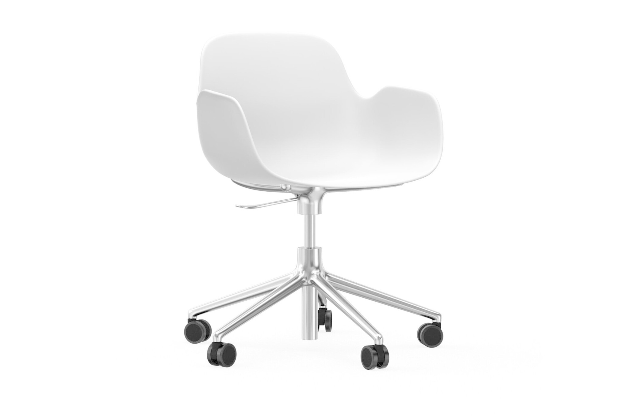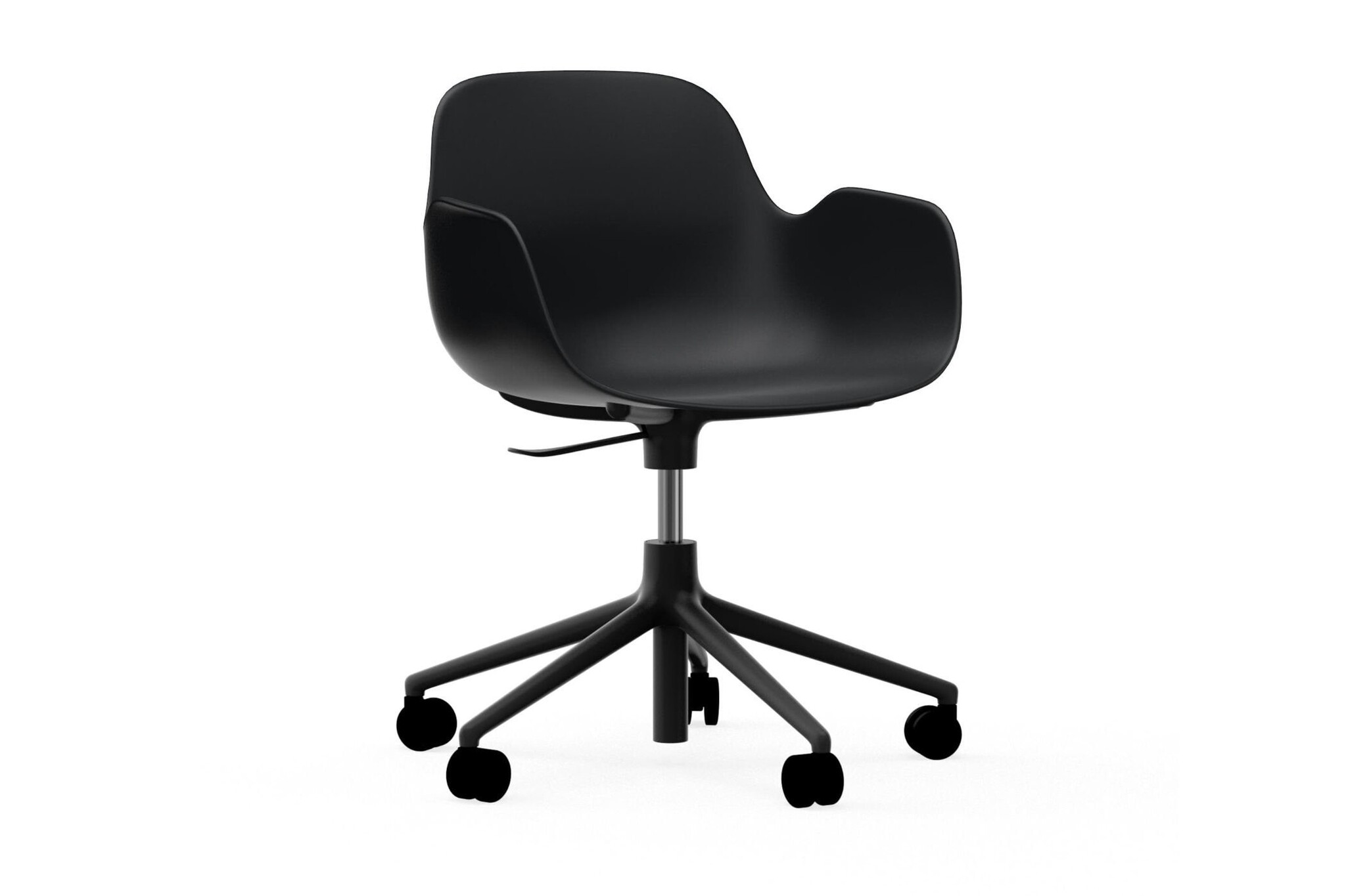 De Form Collectie, die in 2014 werd geïntroduceerd wordt voortdurend uitgebreid. Nu ook met de Normann Copenhagen Form Swivel. Een stoel met zwenkwielen of kruisvoet. Het aluminium geeft de Form-stoel een mannelijke en exclusieve uitstraling, evenals een comfortabele bewegingsvrijheid, waardoor de stoel uitstekend geschikt is voor plaatsen zoals conferentieruimtes en restaurants. Kenmerken Normann Copenhagen Form Swivel stoelen
