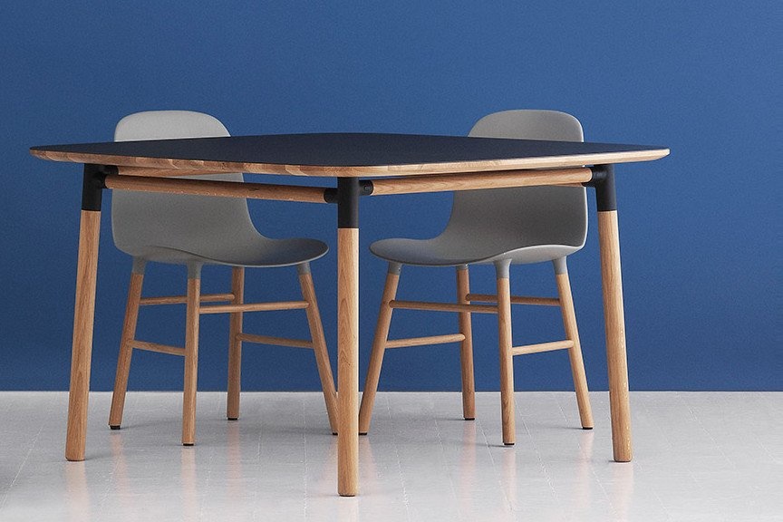 De Normann Copenhagen Form Table is een langwerpige of vierkante houten kantinetafel. Verkrijgbaar in verschillende kleuren en 2 maten past deze tafel in het bedrijfsrestaurant, kantine of in uw eigen keuken als eettafel. Van dezelfde ontwerper, Simon Legald, zijn ook de bijpassende Form Chair kantinestoelen. Met een vochtige doek zijn de tafels makkelijk schoon te houden. Afmetingen vierkante en rechthoekige tafelsDe vierkante Form Table is 74,4 cm hoog en het tafelblad is 120 bij 120 cm. De rechthoekige tafel is 74,4 cm hoog, 190 cm lang en 95 cm breed.
