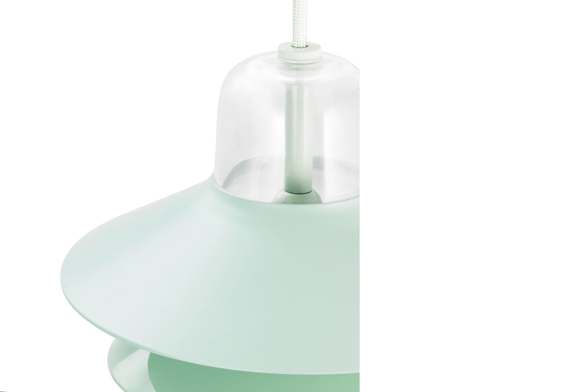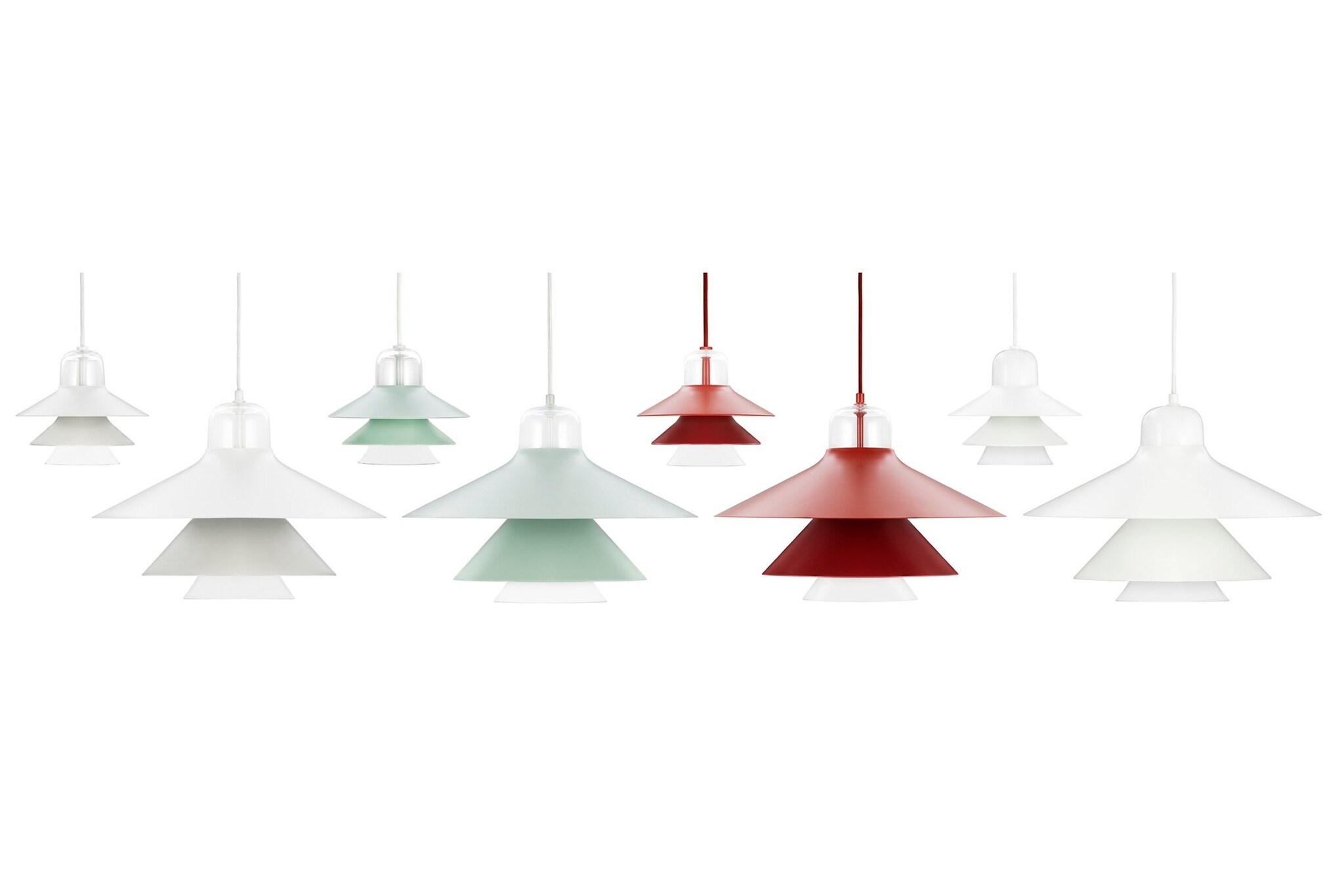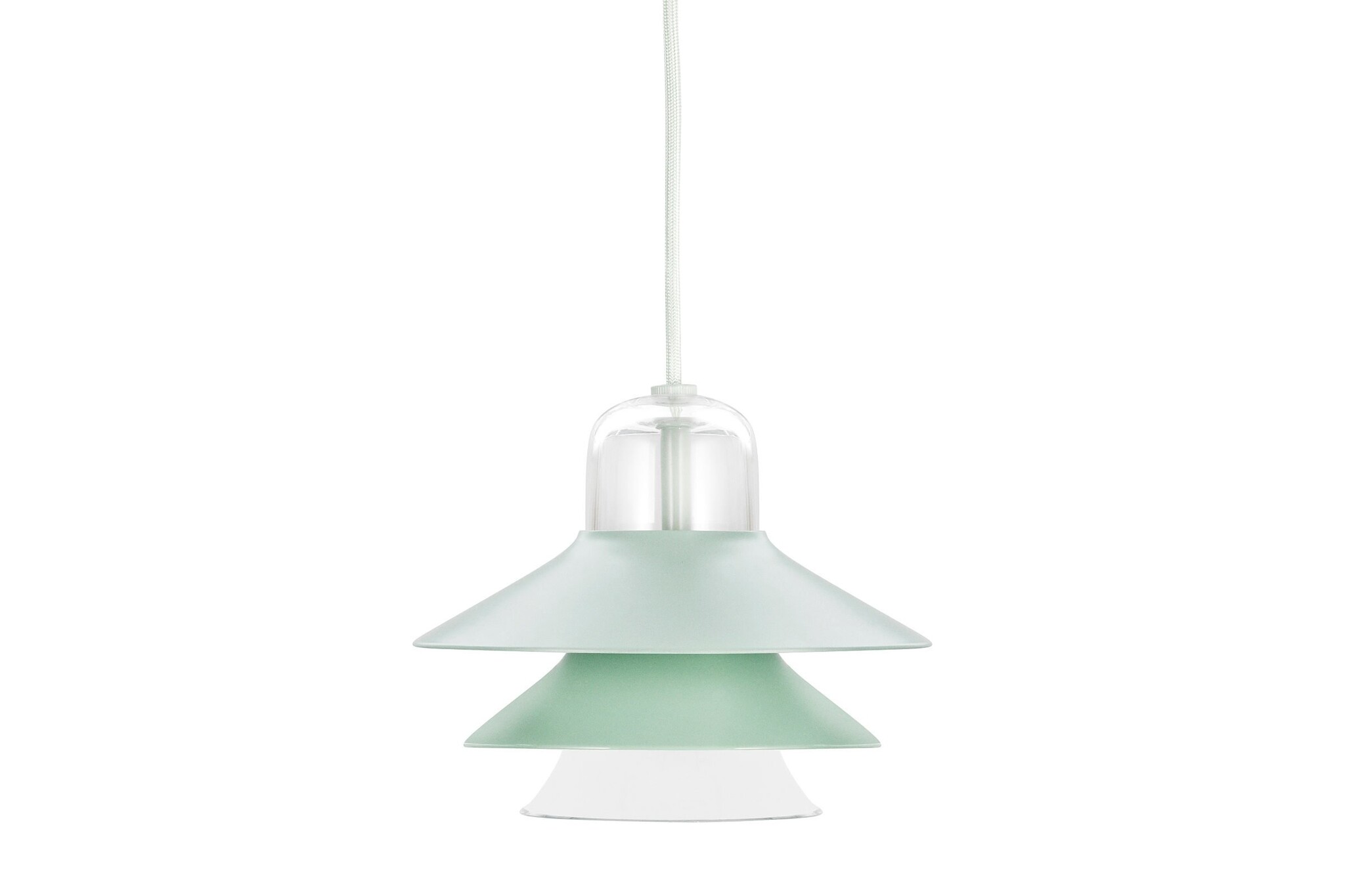 De hanglamp is leverbaar in de kleuren groen, mint, rood en wit.