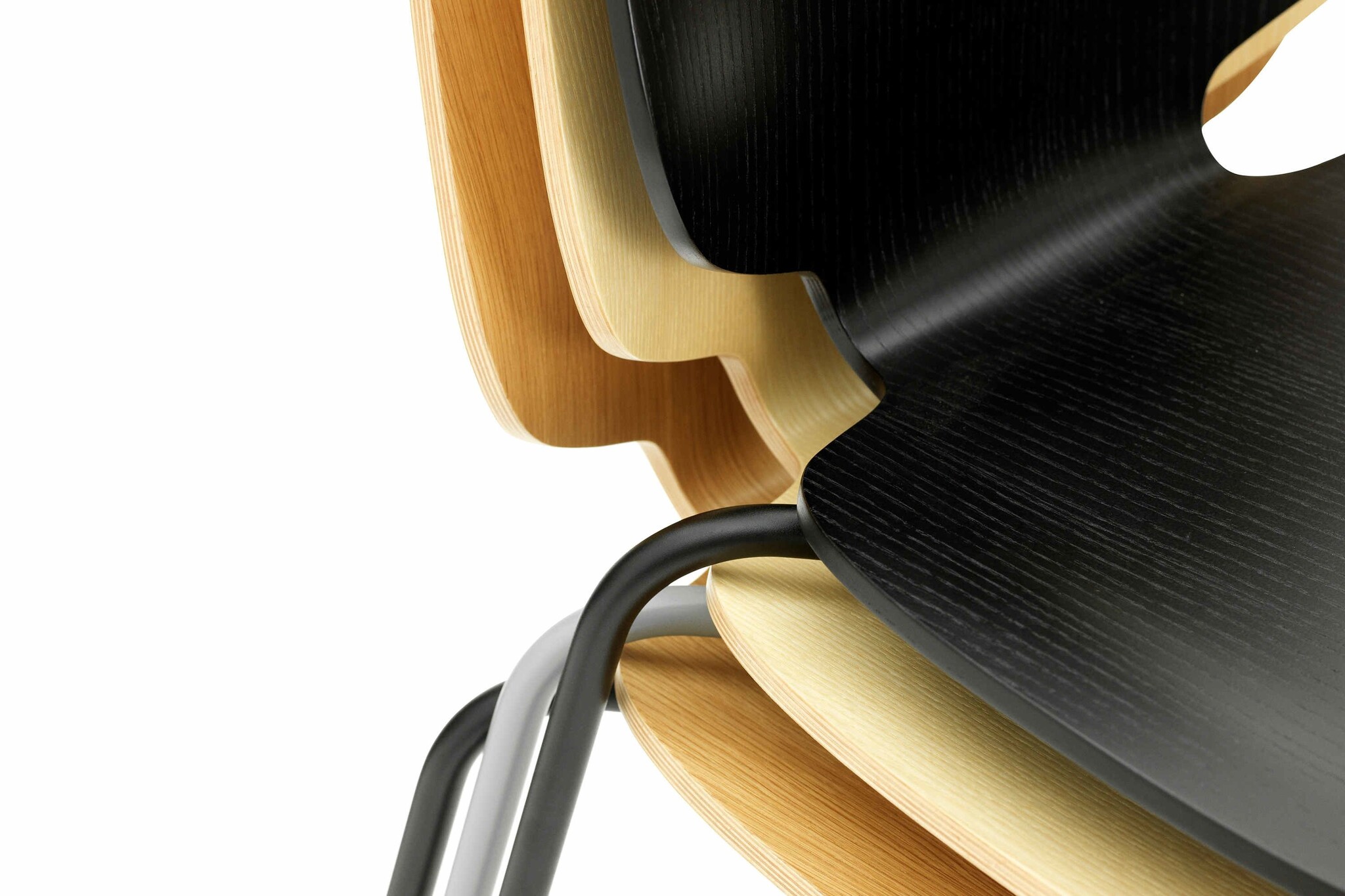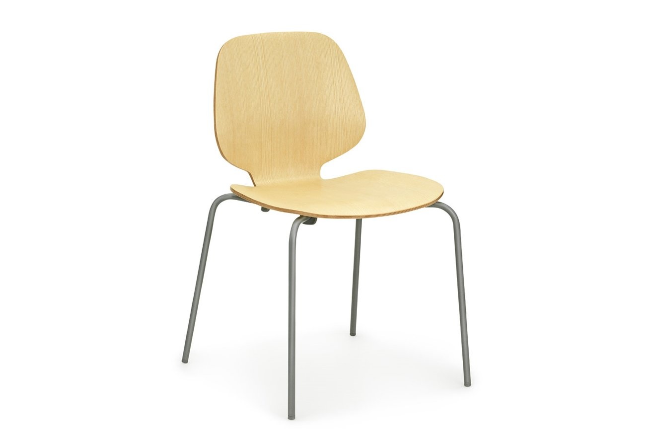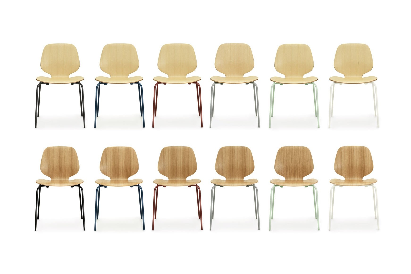 De My Chair is uitgevoerd in gelakt essen-fineer of eiken-fineer; zwarte of witte zitschaal(gemaakt van essen). De stalen poten kunnen worden gepoedercoat in de volgende kleuren: groen, donkerrood, donkerblauw, donkergrijs, wit en zwart.