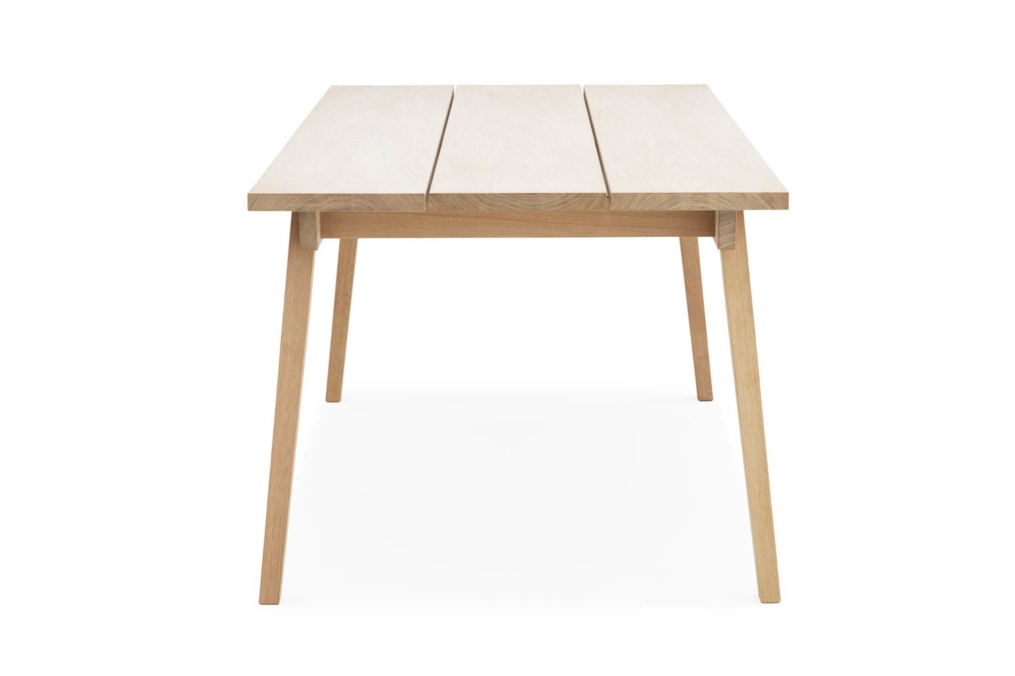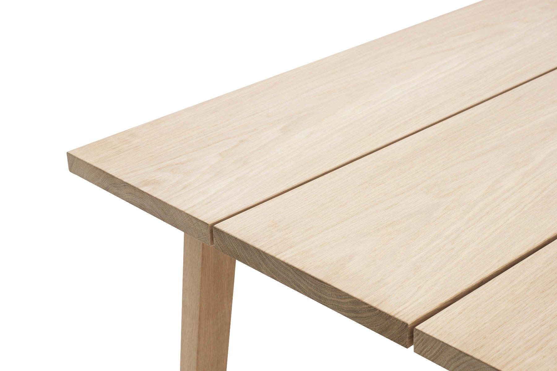 Normann Copenhagen Slice tafel heeft een klassiek, aantrekkelijk ontwerp waarbij het tafelblad eenvoudigweg bestaat uit drie lange, brede planken. De tafel is leverbaar in drie verschillende lengtes perfect grote ruimtes. De gaten tussen de planken maken de Slice tafel luchtig en voegt karakter toe aan dit Scandinavische ontwerp. Daarnaast heeft het een tegelijkertijd een solide en eigentijdse expressie. De Slice van Normann Copenhagen is ideaal als een tafel voor op kantoor om aan te vergaderen of voor gebruik in restaurants.Kenmerken Normann Copenhagen Slice tafel