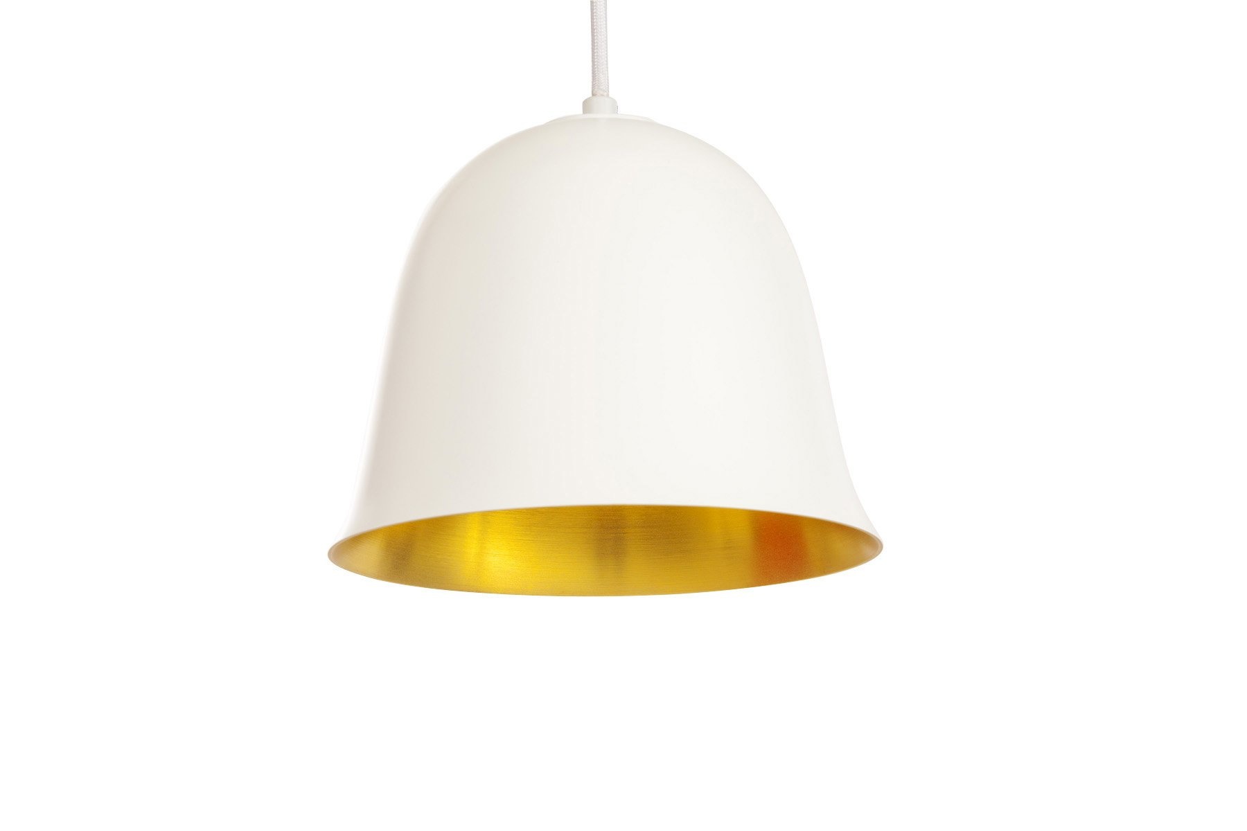 De Franse hoed van de vroege jaren 1900, bekend onder de zelfde naam, Cloche, inspireerde de minimalistische vorm van deze lampen. Het open design helpt om het licht te verspreiden en geeft speelse effecten door de reflecties van de koperen binnenkant. De Cloche-serie bestaat uit 3 soorten met elk een verschillende maat, de Cloch One, Cloche Two en de Cloche Three. De NORR11 Cloche lamp is ontworpen door het ontwerpersduo Knut Bendik Humlevik & Rune Krøjgaard. Kenmerken NORR11 Cloche lampenDe Cloche-serie is een familie van hanglampen in aluminium met messing behandeling aan de binnenkant. Zij zijn op te hangen aan een staaldraad en hebben een kabel van textiel.