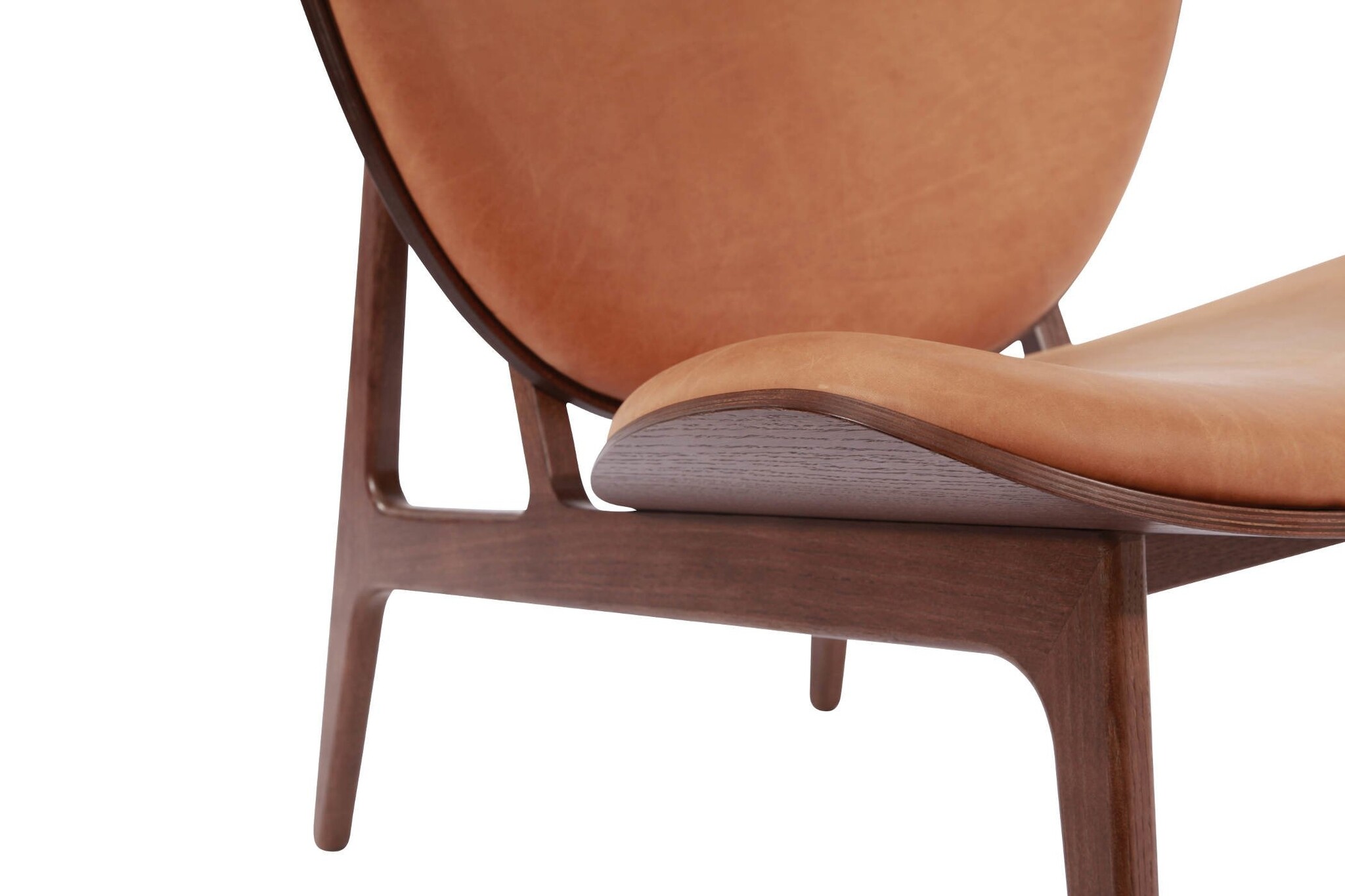 De lounge fauteuil is handgemaakt met een massief eikenhout frame.
