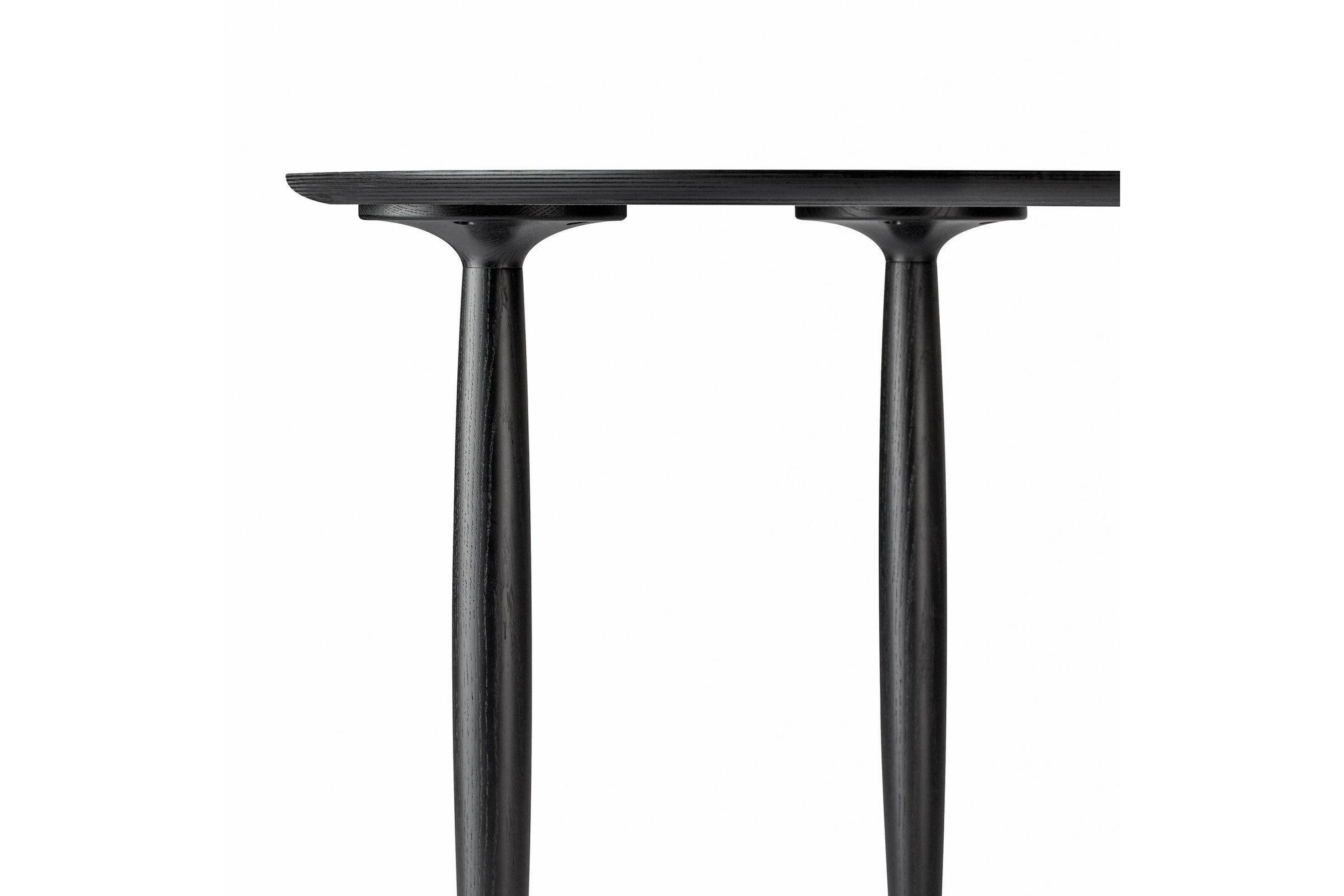 De tafelpoten hebben een bolling en zijn rond afgewerkt.