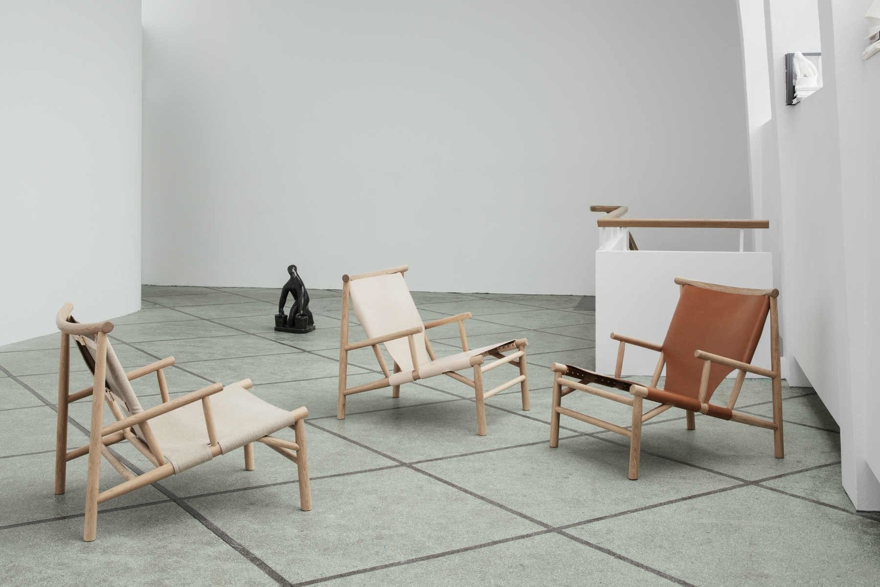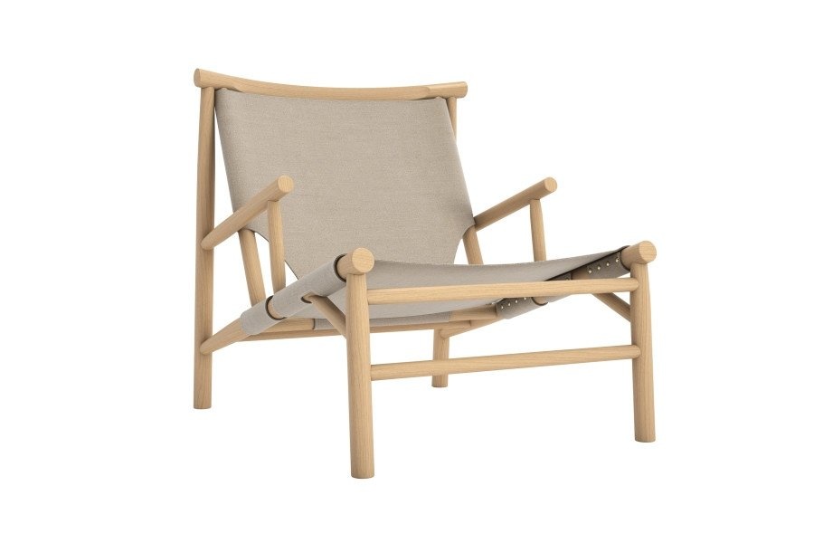 U heeft keuze uit 2 materialen voor de zitting: canvas of leer (Brandy of Nature), beide zijn handgemaakt in Denemarken. Het frame is bij iedere uitvoering gemaakt van natuurlijk eikenhout.