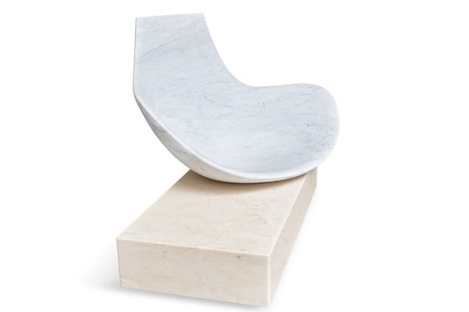 De fauteuil is uitgevoerd in Portugees Rose of Carrara marmer.
