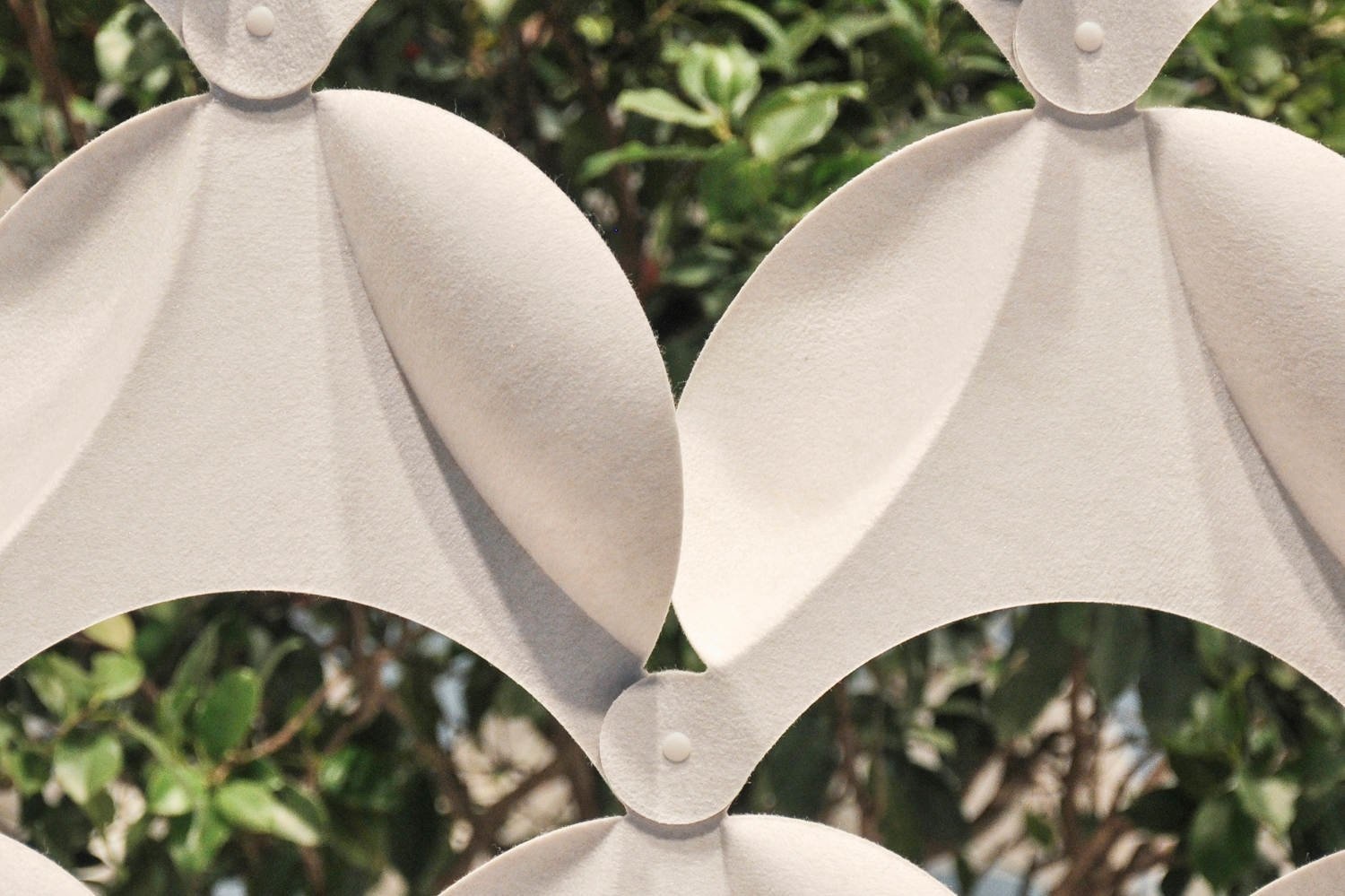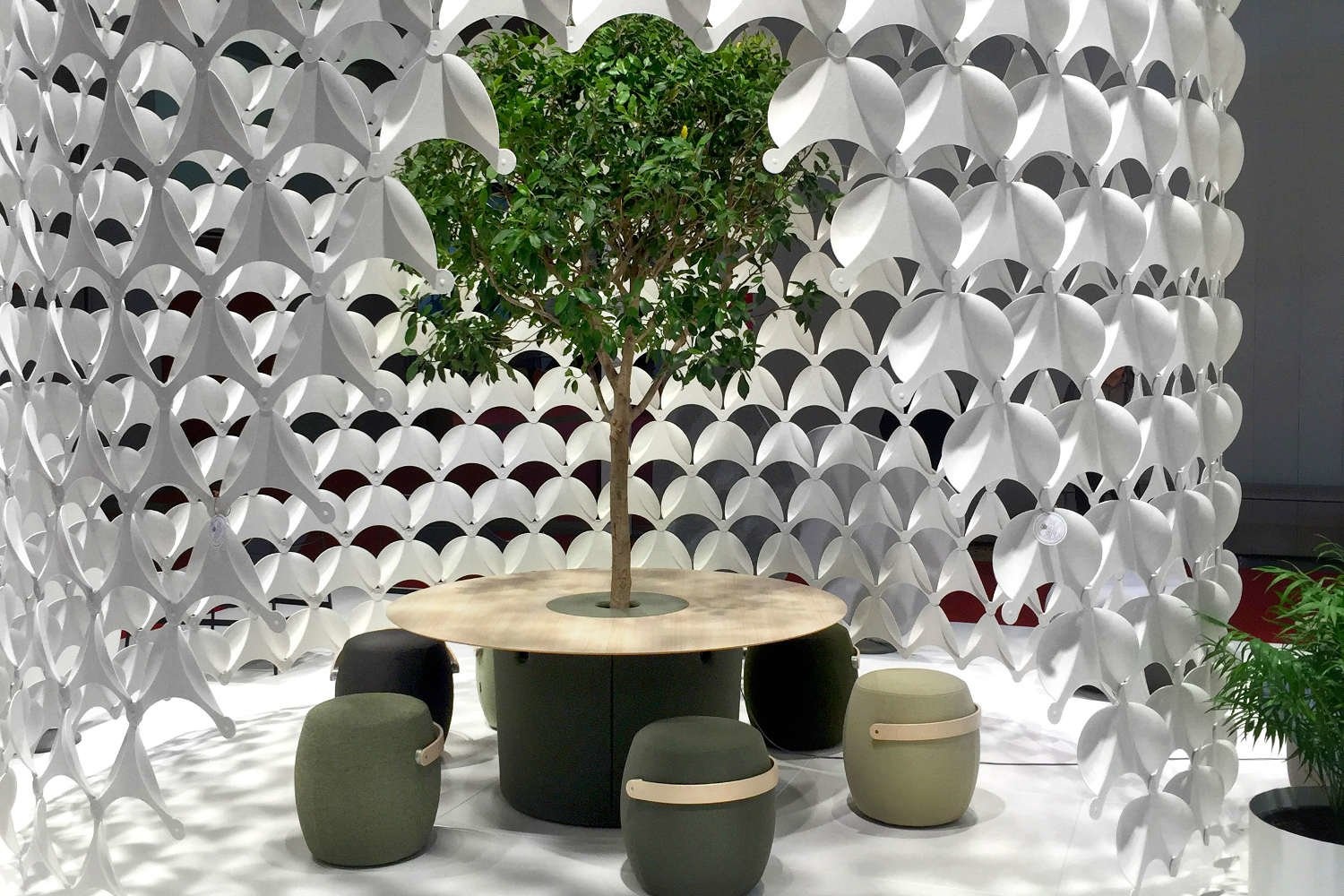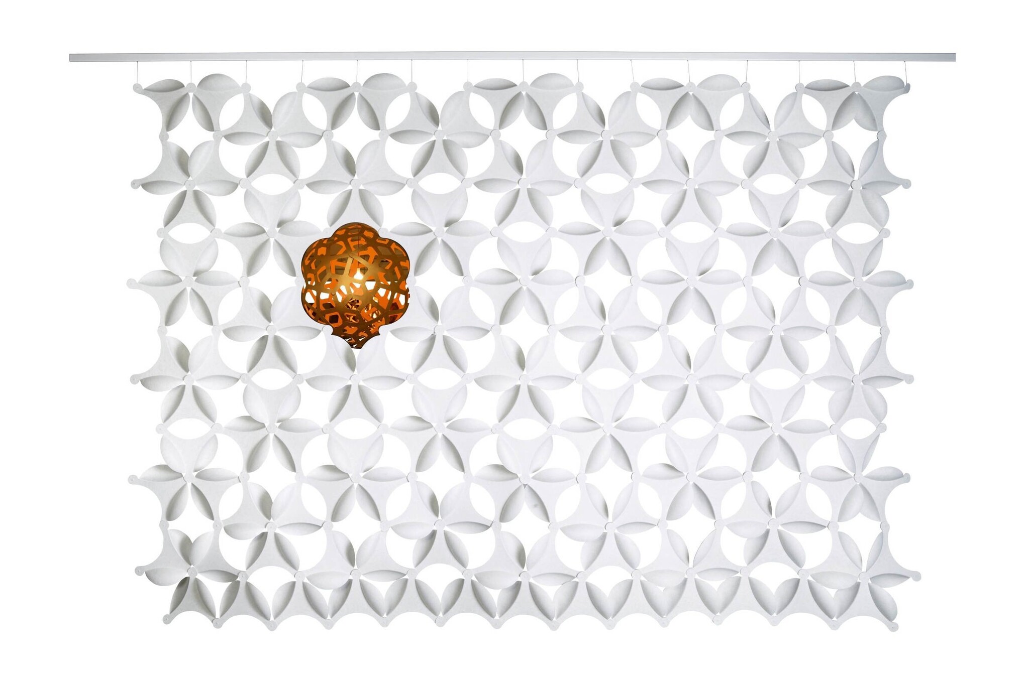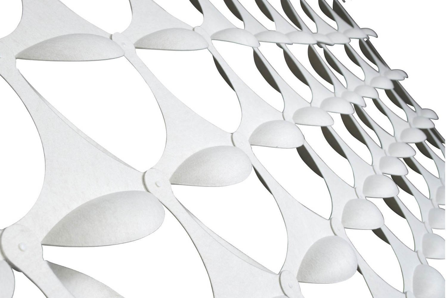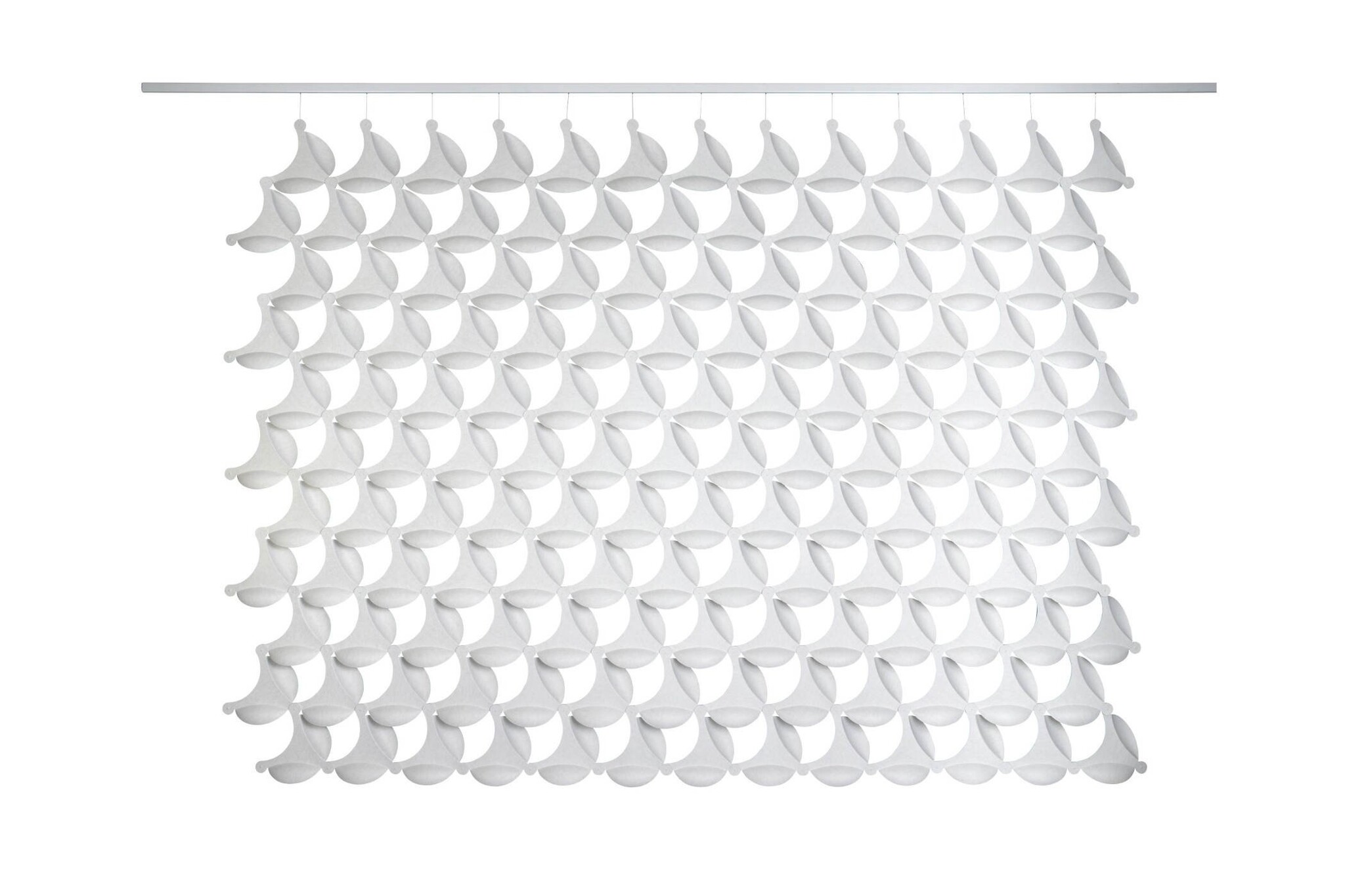 Offecct Membrane is een akoestische scheidingswand, ontworpen door David Trubridge. De scheidingswand bestaat uit kleinere akoestische panelen die samen een modulair systeem vormen in twee afgewerkte patronen. De scheidingswand Membrane van Offecct absorbeert en verspreidt het geluid en laat tevens het licht door. Dit geeft niet alleen een speels effect maar biedt meteen een akoestische oplossing. Het kan worden gebruikt om ruimtes gedeeltelijk te verdelen en kan ook tegen een muur worden geplaatst om het geluid te absorberen en te verspreiden. Natuurlijk heeft het naast zijn sterke akoestische bedieningsfunctie ook een decoratief element en kan het in verschillende vormen en patronen worden geassembleerd. Een interessante architectonische kwaliteit wordt toegevoegd doordat het mooie schaduwen creëert.