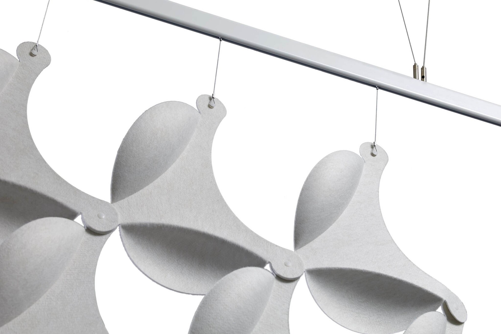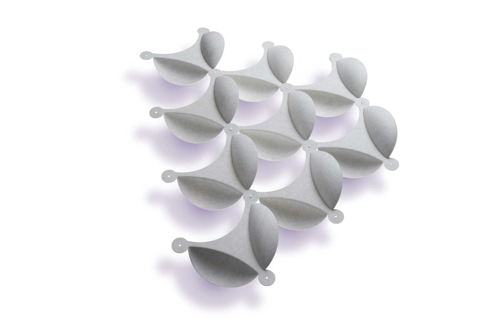 Akoestisch paneel is gemaakt van moulded polyestervezel en is leverbaar in de kleur offwhite.