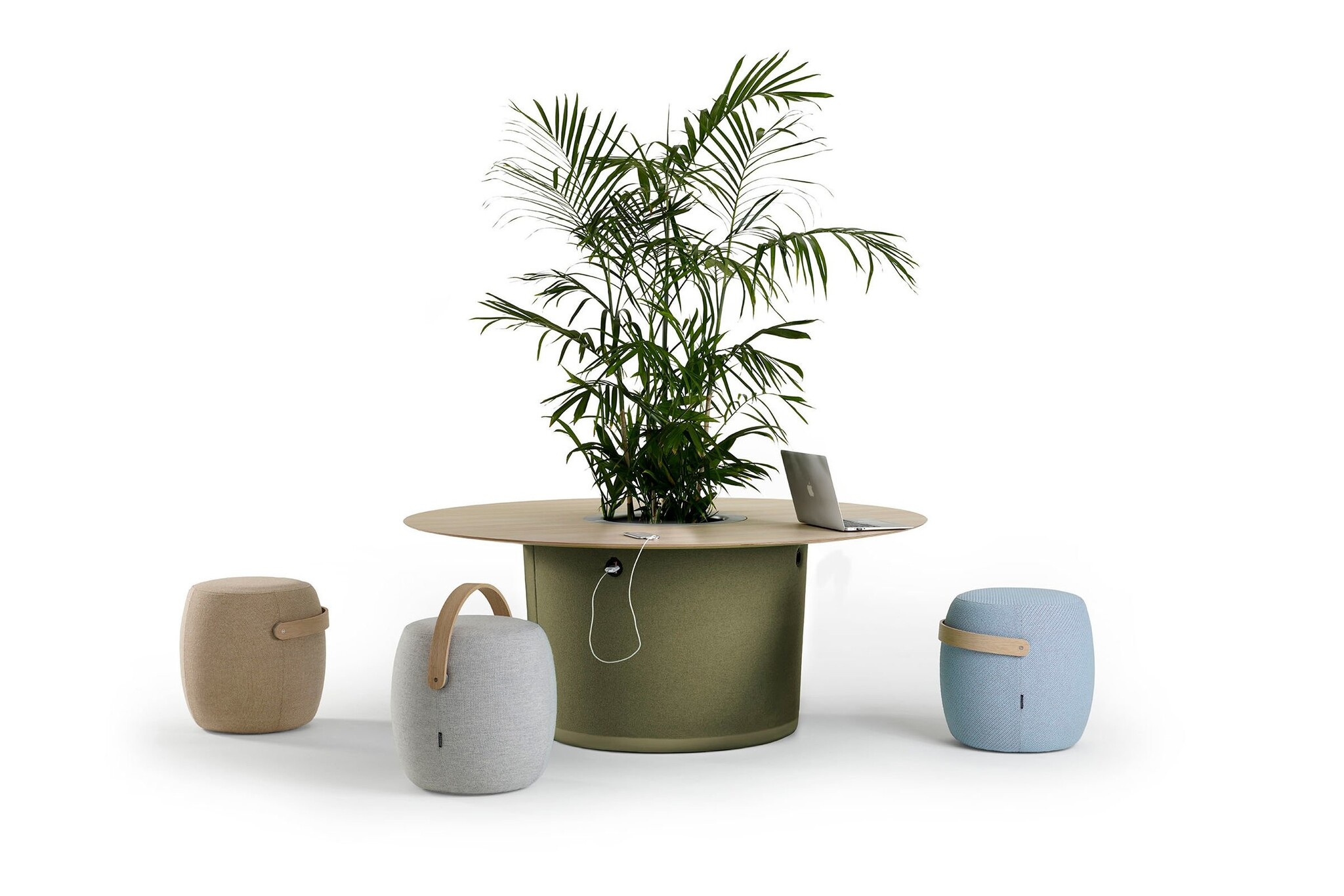 De On Point tafel is ontworpen door Mattias Stenberg, de ontwerper achter de succesvolle kruk Carry On. Deze past dan ook weer goed samen met de On Point tafel. Met zijn zachte en elegante verschijning van de tafel is deze geschikt als een ontmoetingsplek om even bij te praten en kan ook gebruikt worden met planten of andere groenvoorzieningen, om zo een barrière te creëren om wat persoonlijkere gesprekken te voeren. Het tafelblad kan namelijk uitgevoerd worden met een opening waarin een boompje of plant geplaatst kan worden. De tafel is ook verkrijgbaar met een energiebron, zodat het als oplaadpunt in openbare plaatsen, waar elektronische apparaten worden gebruikt, kan fungeren. Deze stopcontacten zitten in de gestoffeerde romp.