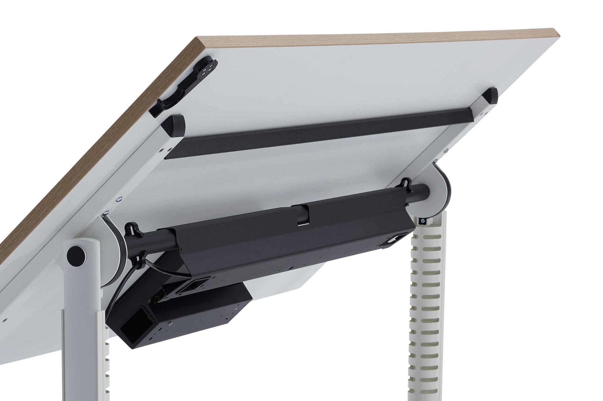 De inbouwklep is mooi weggewerkt in het blad en stoort hierdoor niet. Bovendien is uw laptop of andere elektrische apparatuur op te laden zonder dat er snoeren achter u langslopen.