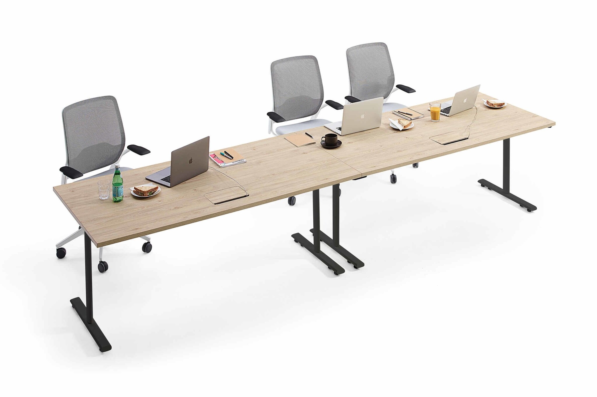 Zit u in een vergadering die net even langer duurt dan u had gedacht en raakt de batterij van uw laptop op? Dan is het fijn om te weten dat in de Orangebox Convo tafels het mogelijk is om inbouwkleppen te plaatsen om uw elektrificatievoorziening met stopcontacten of USB-oplaadmogelijkheden te plaatsen.