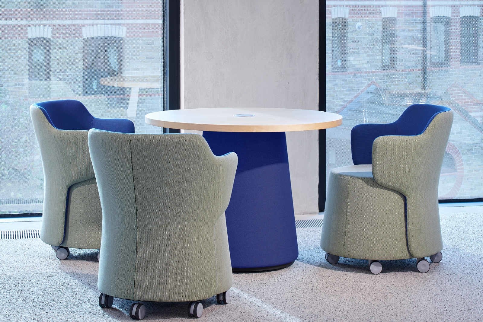 Met de Orangebox Skomer stoel heeft u een compacte en verrijdbare stoel die ook nog comfortabel zit dankzij de volledig gestoffeerde zitting en rugleuning met armleuningen. De Skomer is een uitgebreide variant op de Sully poef en ze passen mooi bij elkaar. Makkelijk verplaatsbaar Dankzij de wielen is de Skomer stoel van Orangebox eenvoudig te verplaatsen. U rijdt de stoel naar de gewenste plek of als vergaderstoel is deze comfortabele Skomer ook ideaal toe te passen. U schuift de stoel aan, terwijl u zit.