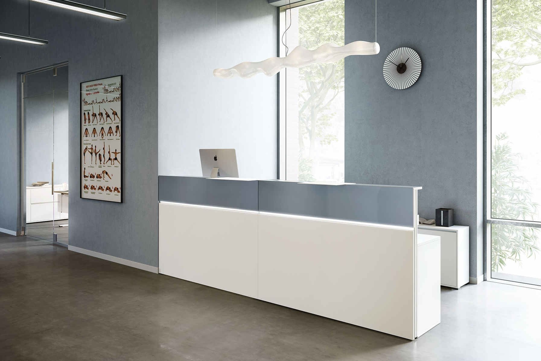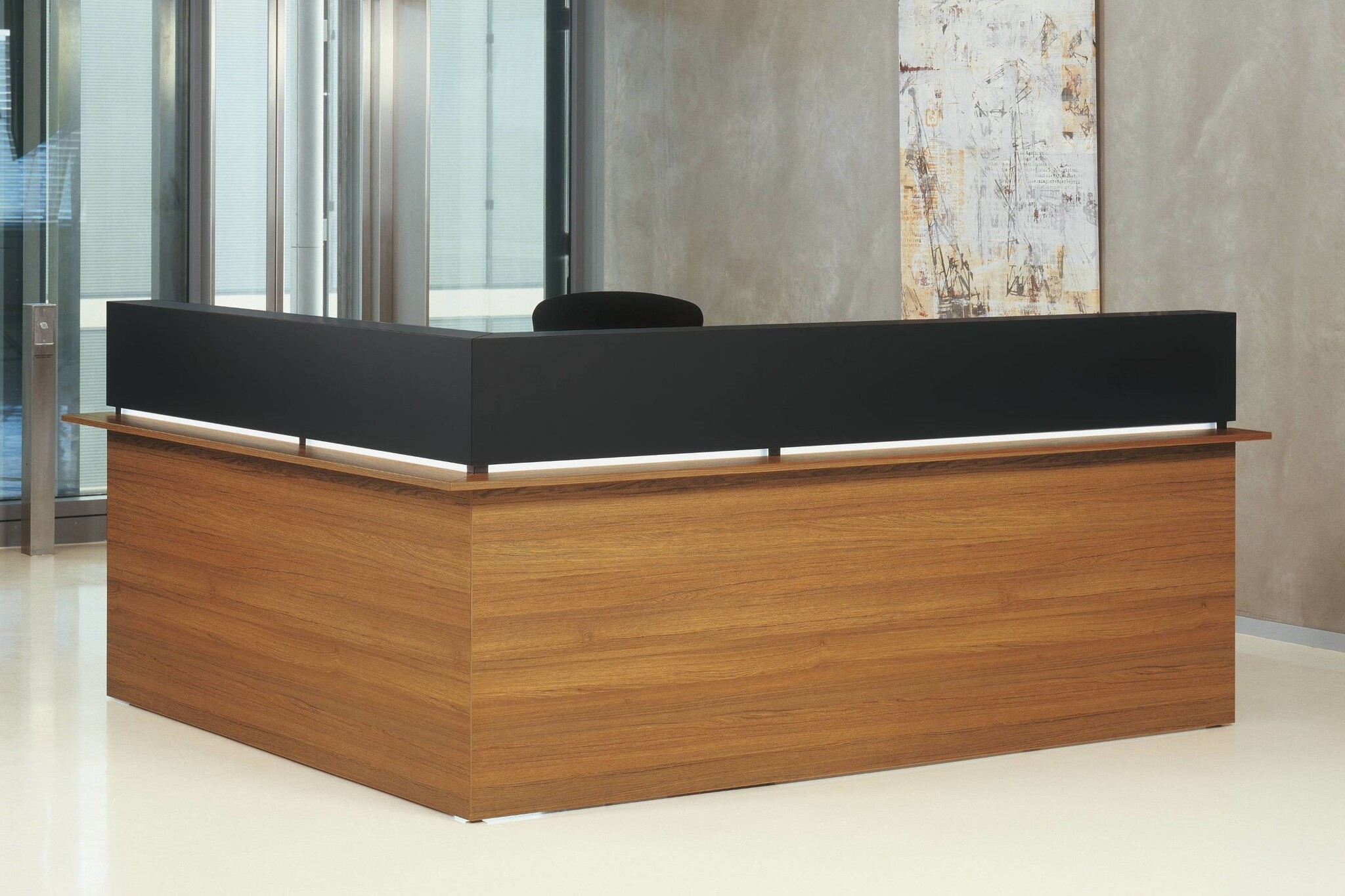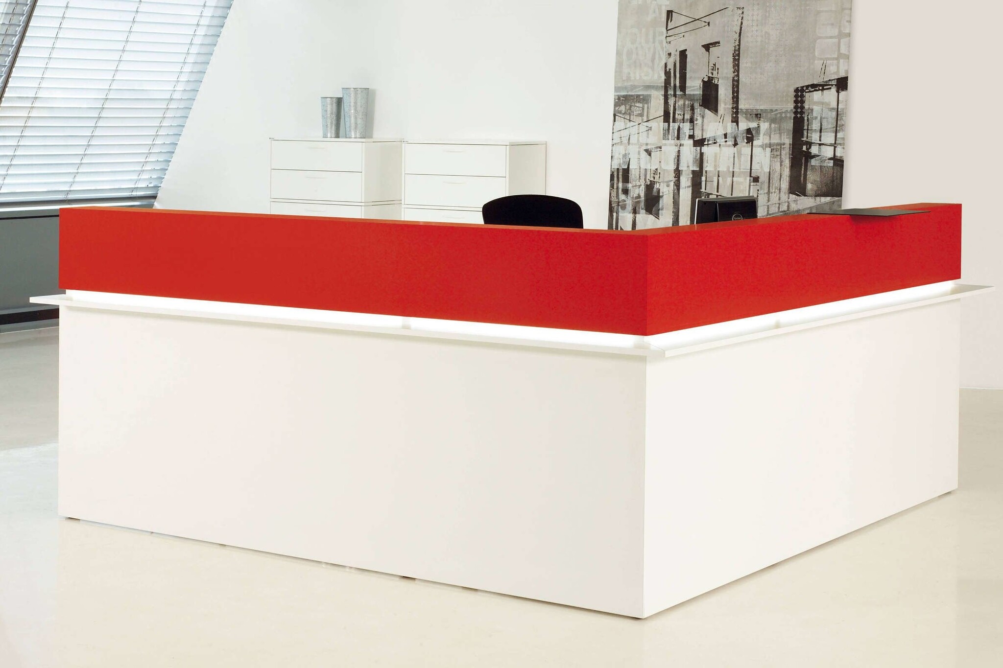Een balie/receptiemeubel dat in vele kleuren en maten als doorbouw systeem te verkrijgen is. De Casus heeft een representatieve uitstraling met hoogwaardige materialen. De spaanplaten worden met geheel omlopende PP-kantenband, door middel van de nieuwste lasertechnologie met een onzichtbare voeg met elkaar verbonden. De Casus balie is ook uit te voeren met led lijst verlichting.