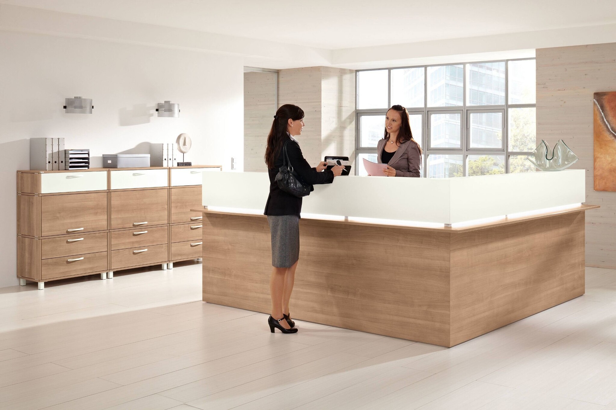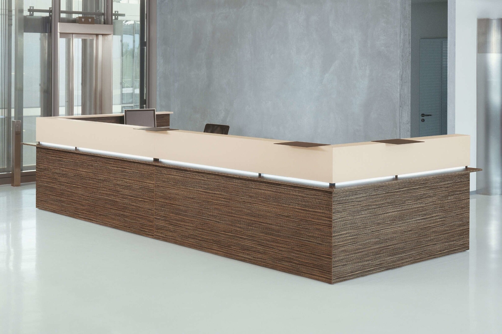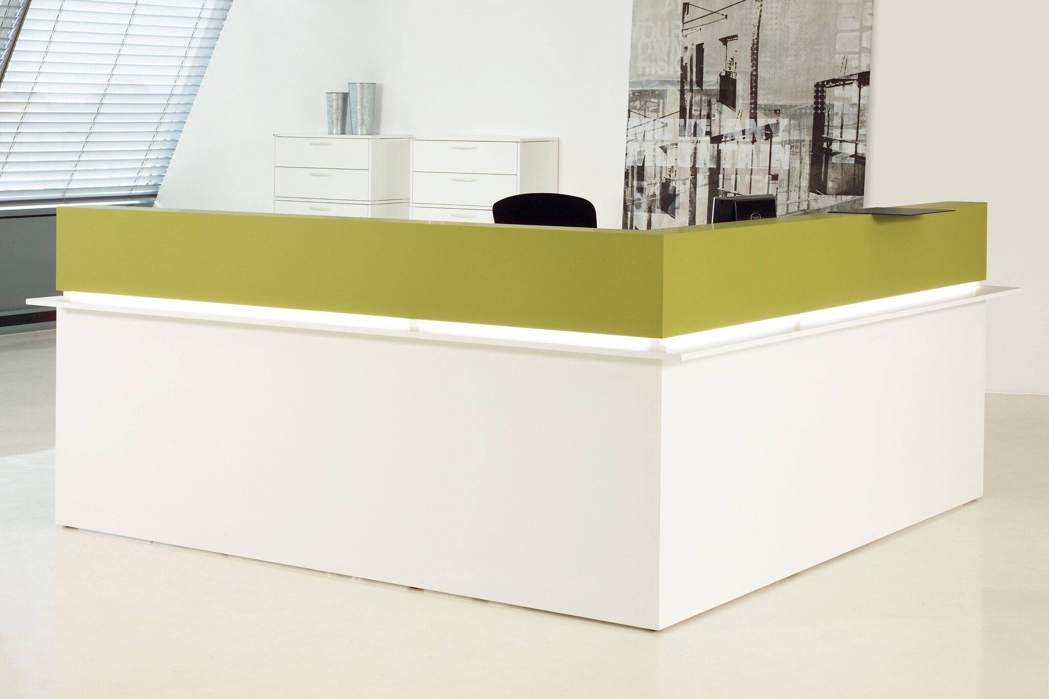 Een balie/receptiemeubel dat in vele kleuren en maten als doorbouw systeem te verkrijgen is. De Casus heeft een representatieve uitstraling met hoogwaardige materialen. De spaanplaten worden met geheel omlopende PP-kantenband, door middel van de nieuwste lasertechnologie met een onzichtbare voeg met elkaar verbonden. De Casus balie is ook uit te voeren met led lijst verlichting.