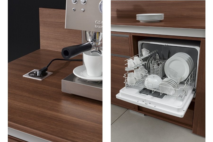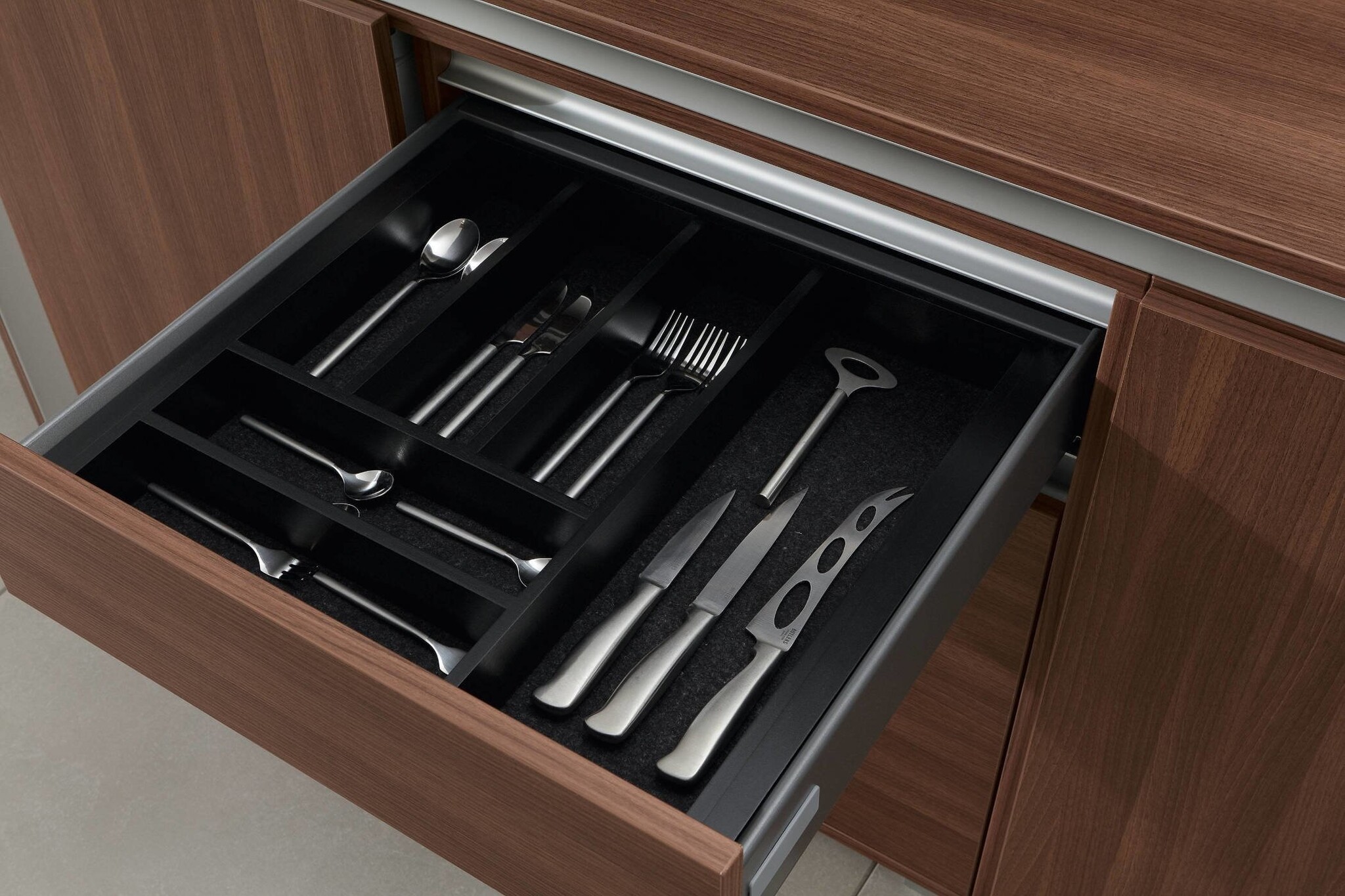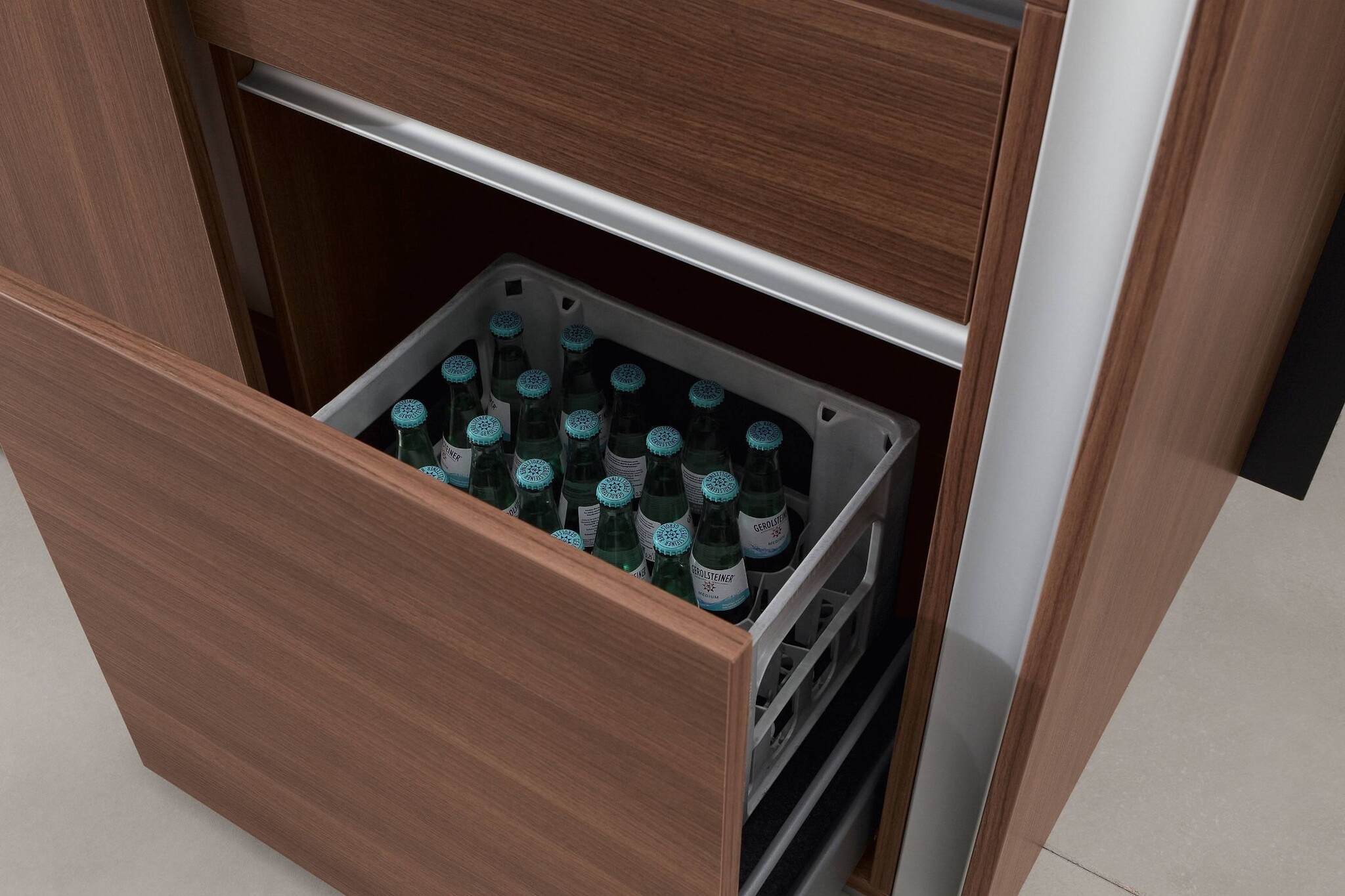 Dit zijn modulaire cateringkasten, greeploze kastsystemen. De standaard 8 mm dikke achterwand is aan beide kanten met decoroppervlak voorzien. De binnenliggende draaideuren kunnen in een hoek van 110º geopend worden. Alle draaideuren en uitschuifbare elementen zijn voorzien van verschillende dempingsystemen en sluiten daardoor geluidloos af. In verschillende afwerking verkrijgbare verzonken grepen uit aluminium zorgen voor een eenvoudige toegang bij draaideuren en uitschuifbare elementen. Cateringkasten worden zonder sloten vervaardigd. Deze kasten kunnen eenvoudig worden afgesteld door middel van een inbussleutel.