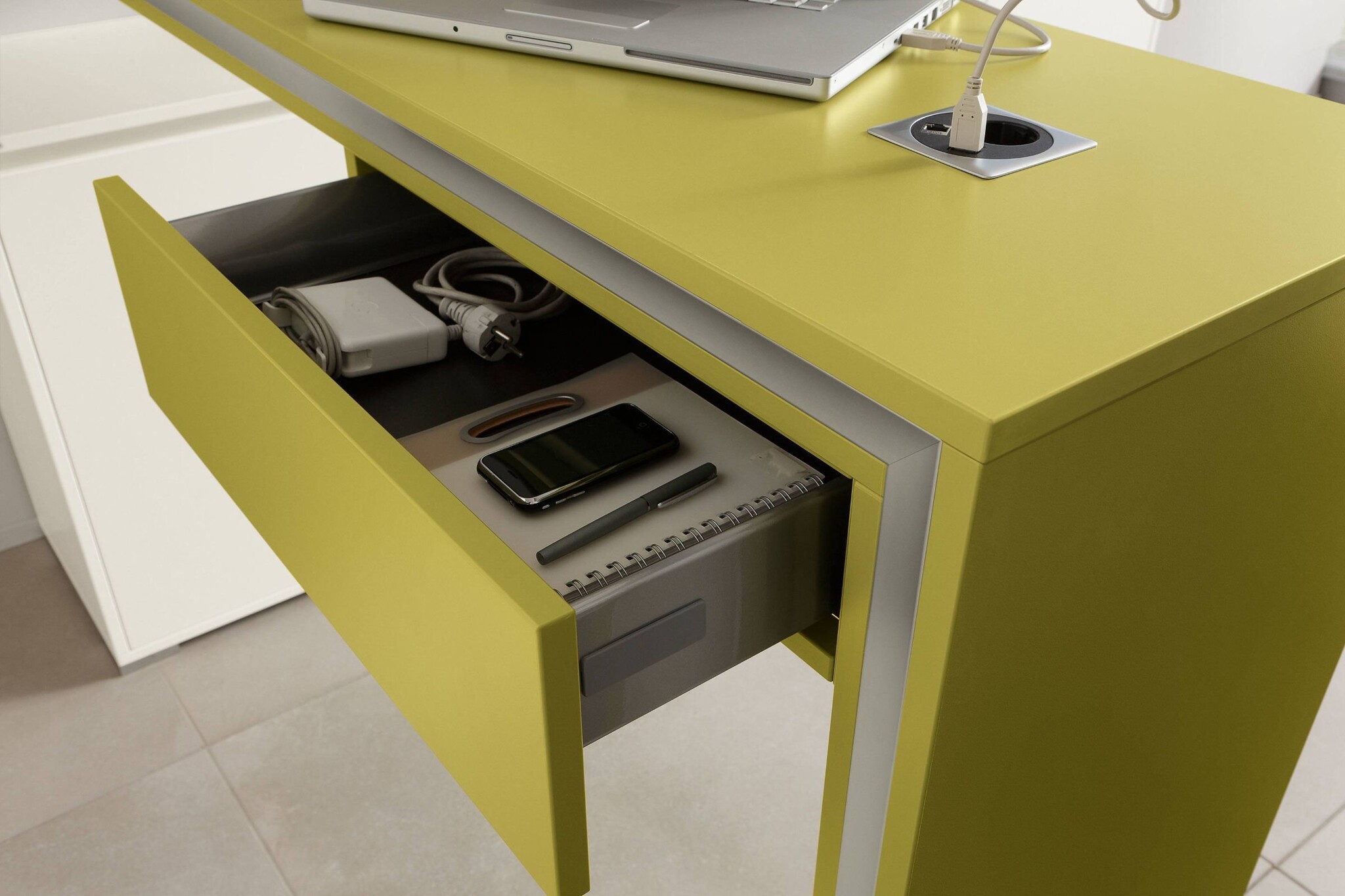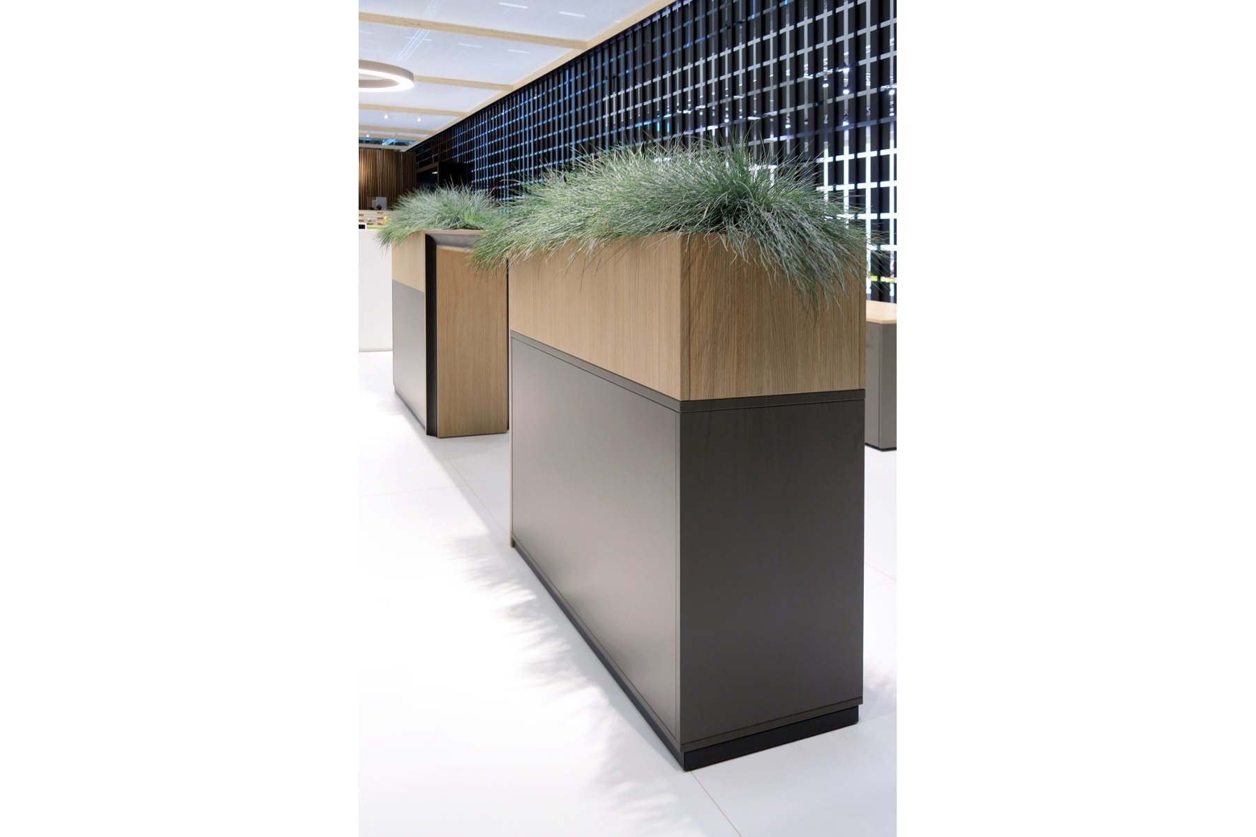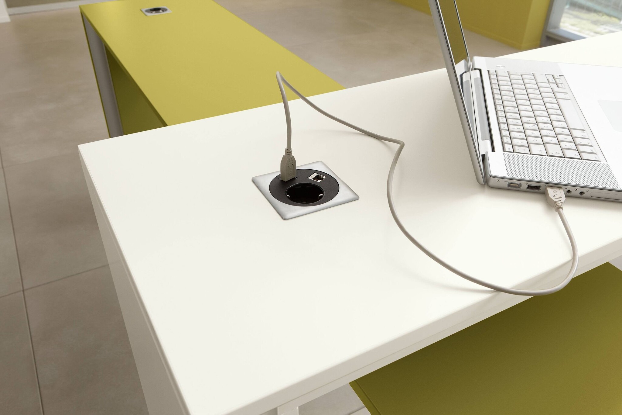 19 mm dikke MDF-platen met melamine oppervlakte en 2 mm PP laser kantenband met een radius van 2 mm afgerond. Al het plaatmaterial met melamine oppervlakte voldoet aan de emissieklasse E1 volgens DIN EN 14322.