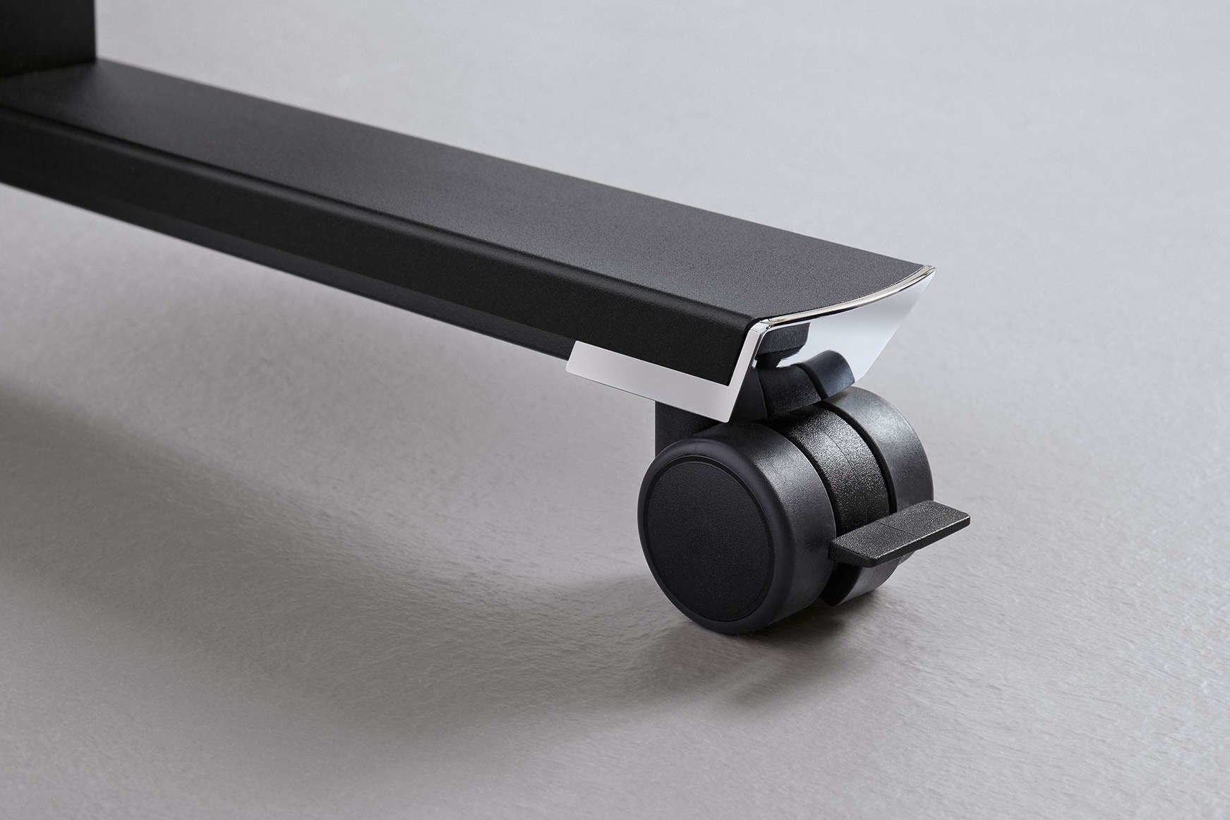 De programma's Palmega en Caldo hebben een vrijdragend modulair bureausysteem met T-poten. Deze mobiele klaptafels, die op wielen kunnen worden gebruikt, passen zich flexibel aan de veranderende eisen van uw communicatie aan. En wanneer ze niet meer nodig zijn, kunt u de tafels parkeren in een ruimtebesparende ruimte die daarvoor beschikbaar is.