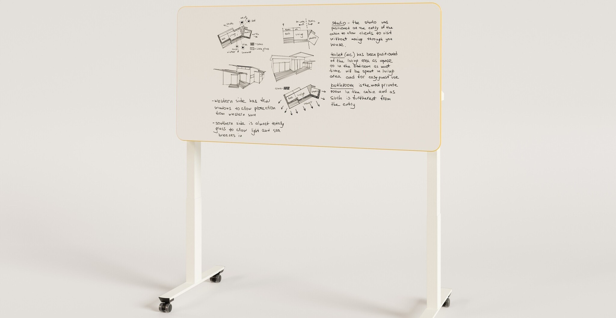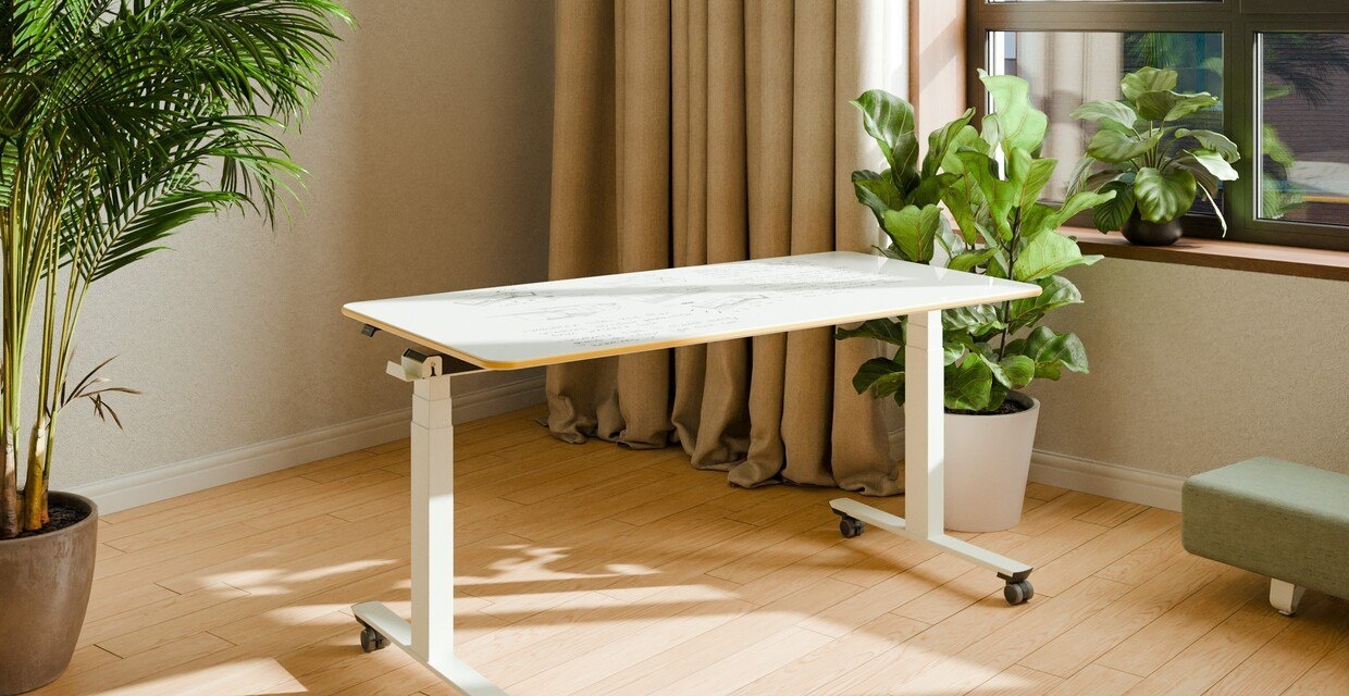 De conferentietafel (afmetingen 1600 mm x 800 mm) is een elektromotorisch CREW-T frame op wielen. Het tafelblad kan worden gekanteld en kan horizontaal worden gebruikt om te werken of verticaal voor presentaties. Er is keuze uit verschillende melamine afwerkingen en een beschrijfbaar whiteboard. Het tafelblad heeft afgeronde hoeken en biezen. De projectklaptafel kan elektrisch of optioneel met een oplaadbare accu worden gebruikt.