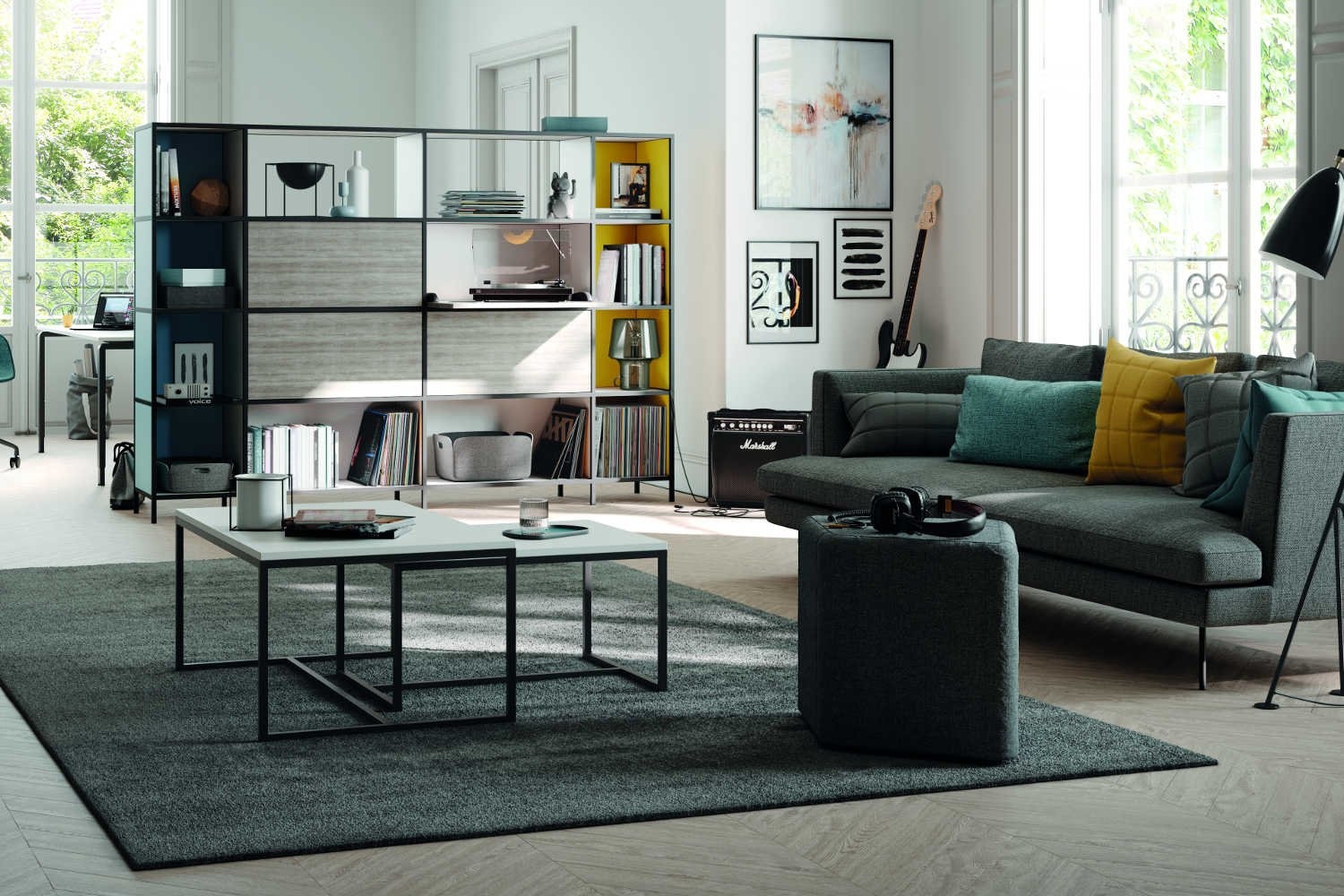 De poef hoeft niet altijd als zitmeubel te dienen, maar kan ook gebruikt worden als bijzettafel of accessoire.