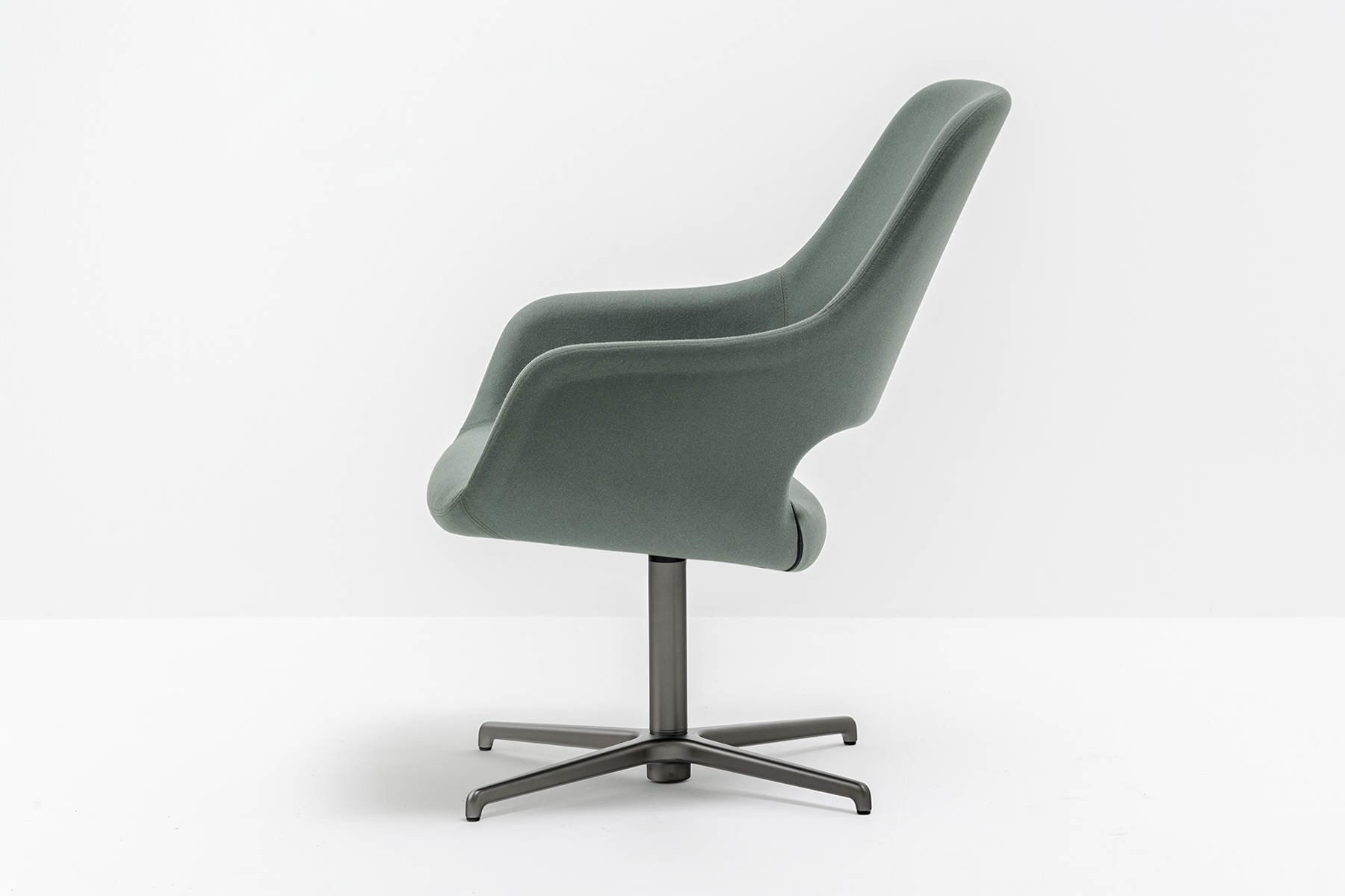 Verkrijgbaar in 3 verschillende onderstellen en ideaal te gebruiken in loungen, wachtkamer of als luxe vergaderstoel om comfortabel te vergaderen.