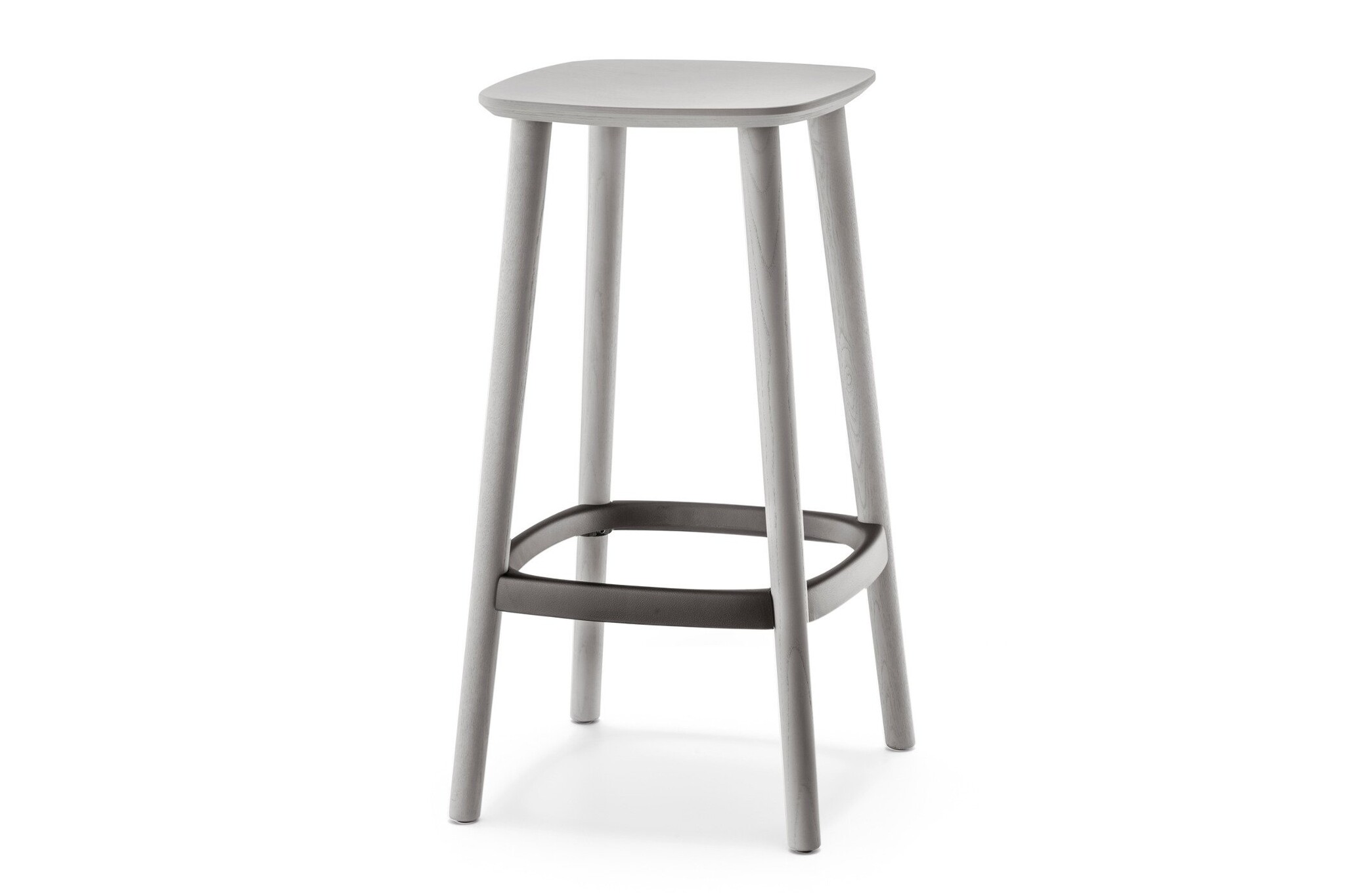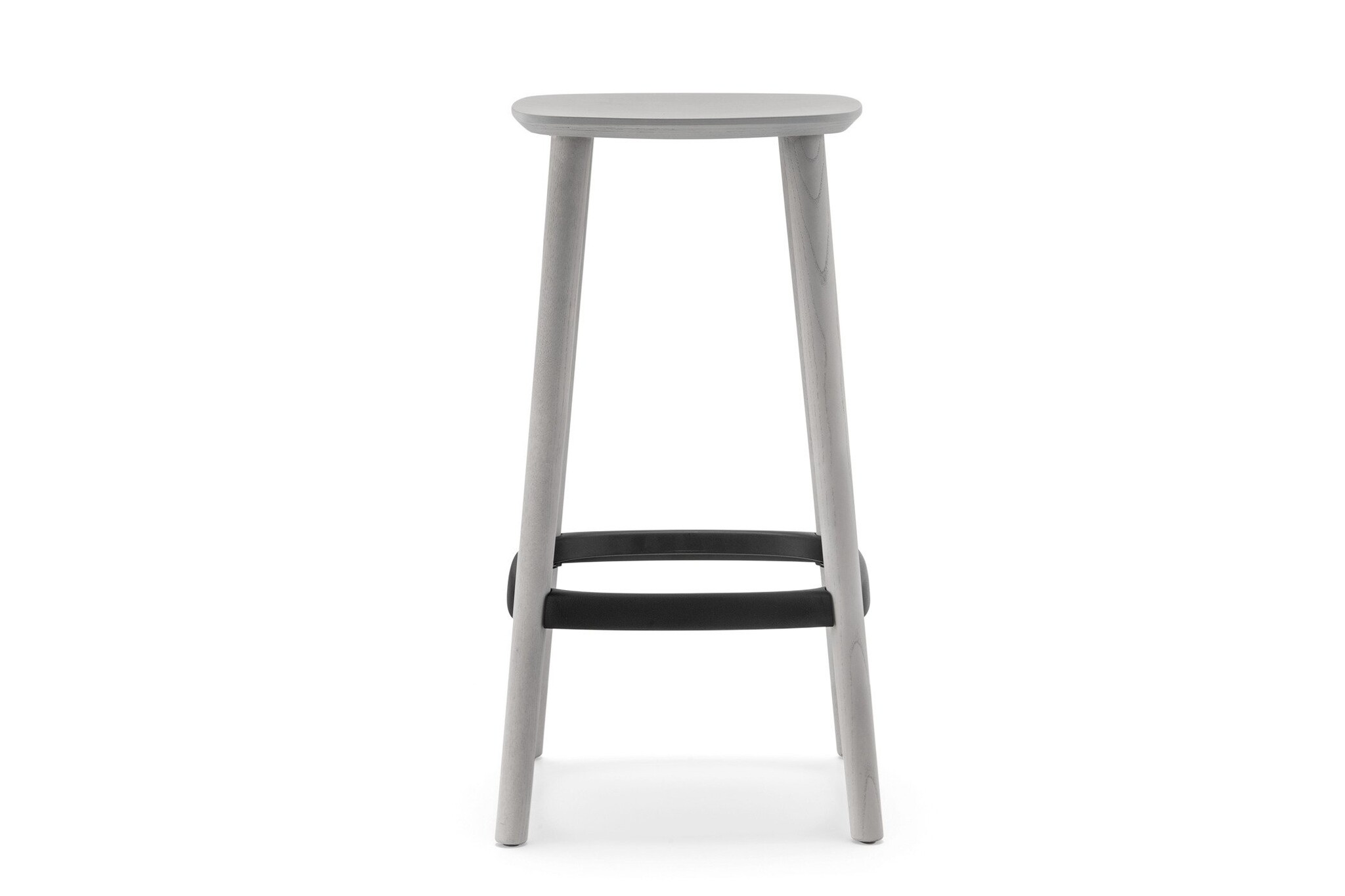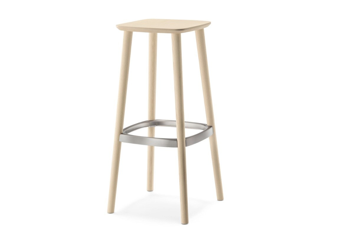 Een barkruk van essenhout. De hoogte is 750 mm.