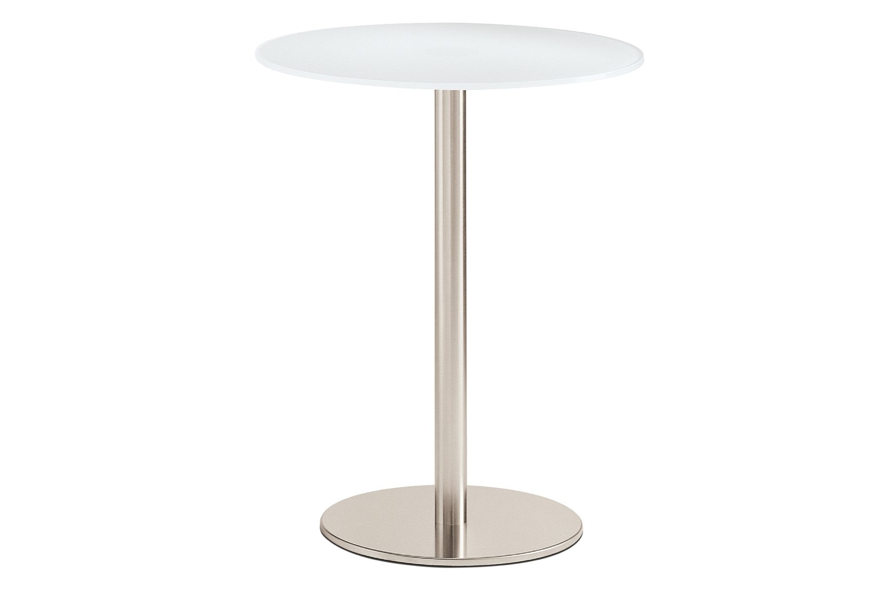 De Pedrali Inox round 4401_H500 tafel heeft een gezandstraalde gietijzeren voet. Geborsteld, gepolijst of in poedervorm roestvrij stalen basis en kolom. Stelglijders op aanvraag. De tafel is te combineren met tafelbladen in verschillende maten en afwerkingen.