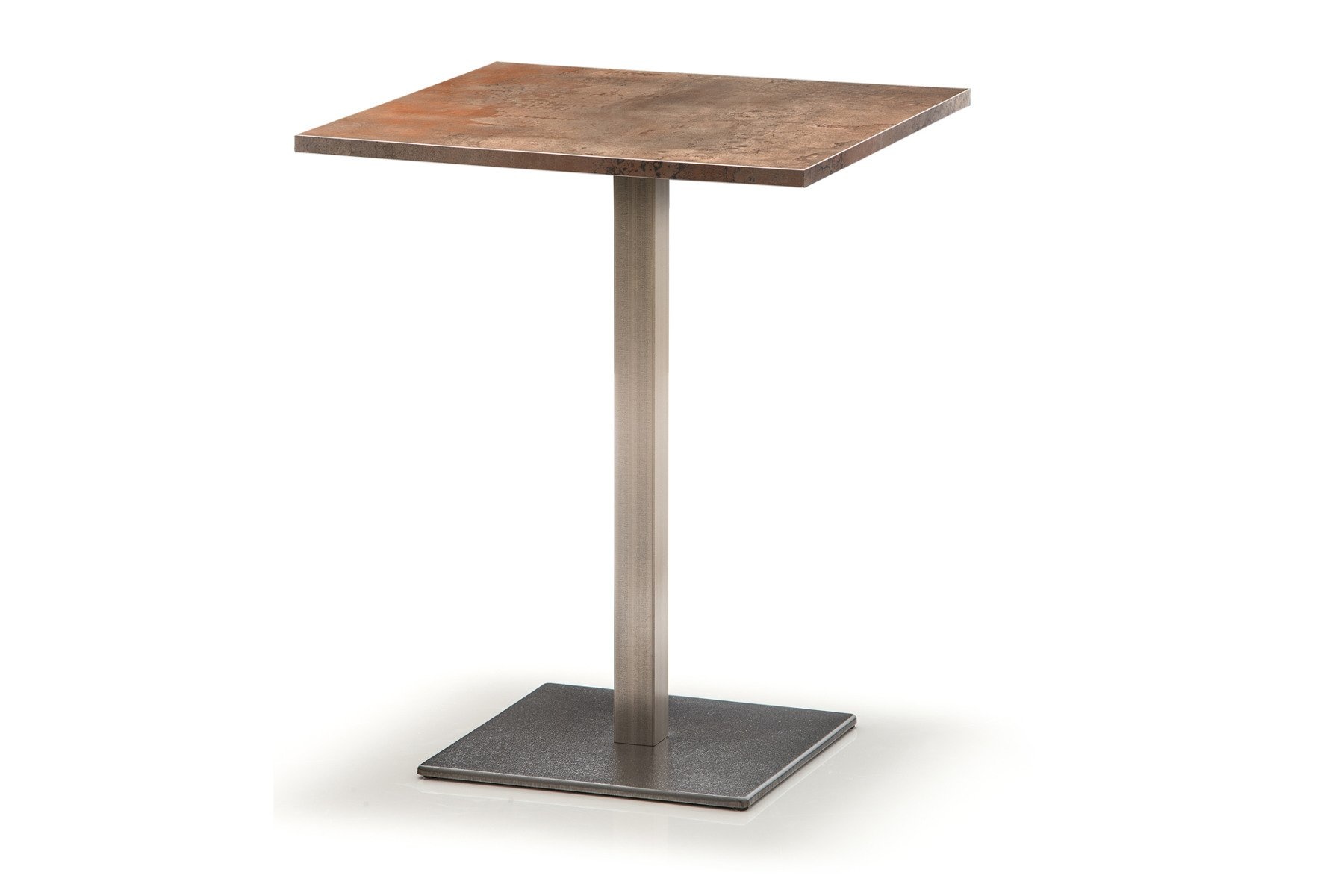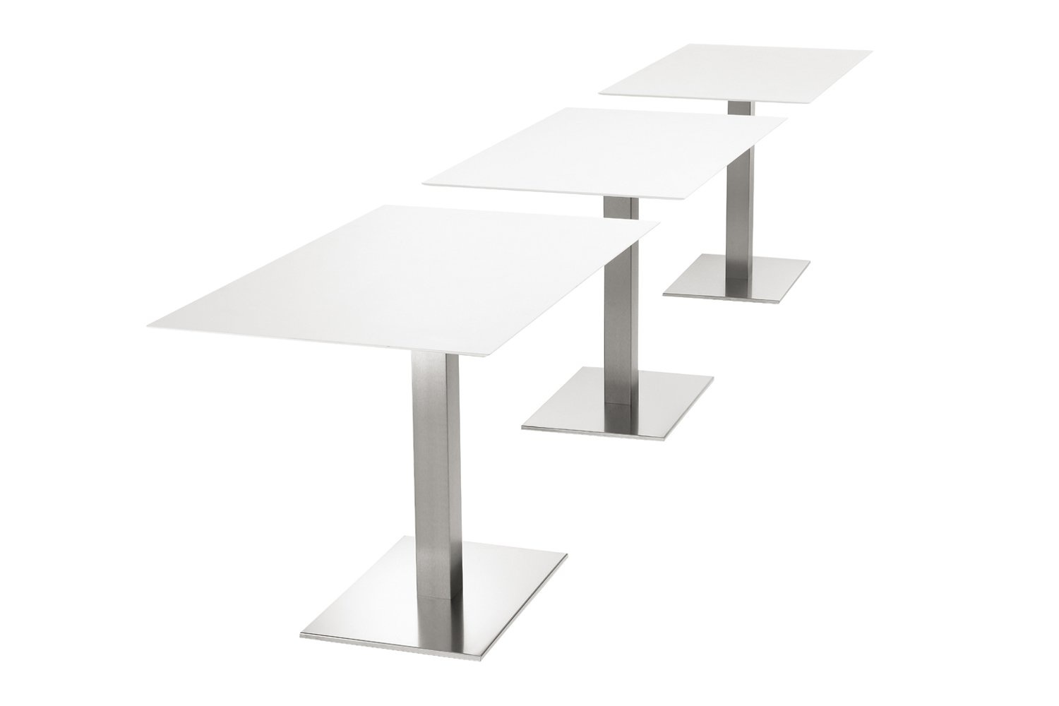 De Inox 4491 is een vierkante tafelonderstel van geborsteld of gepolijst roestvrij staal met 80 x 80 mm buis.