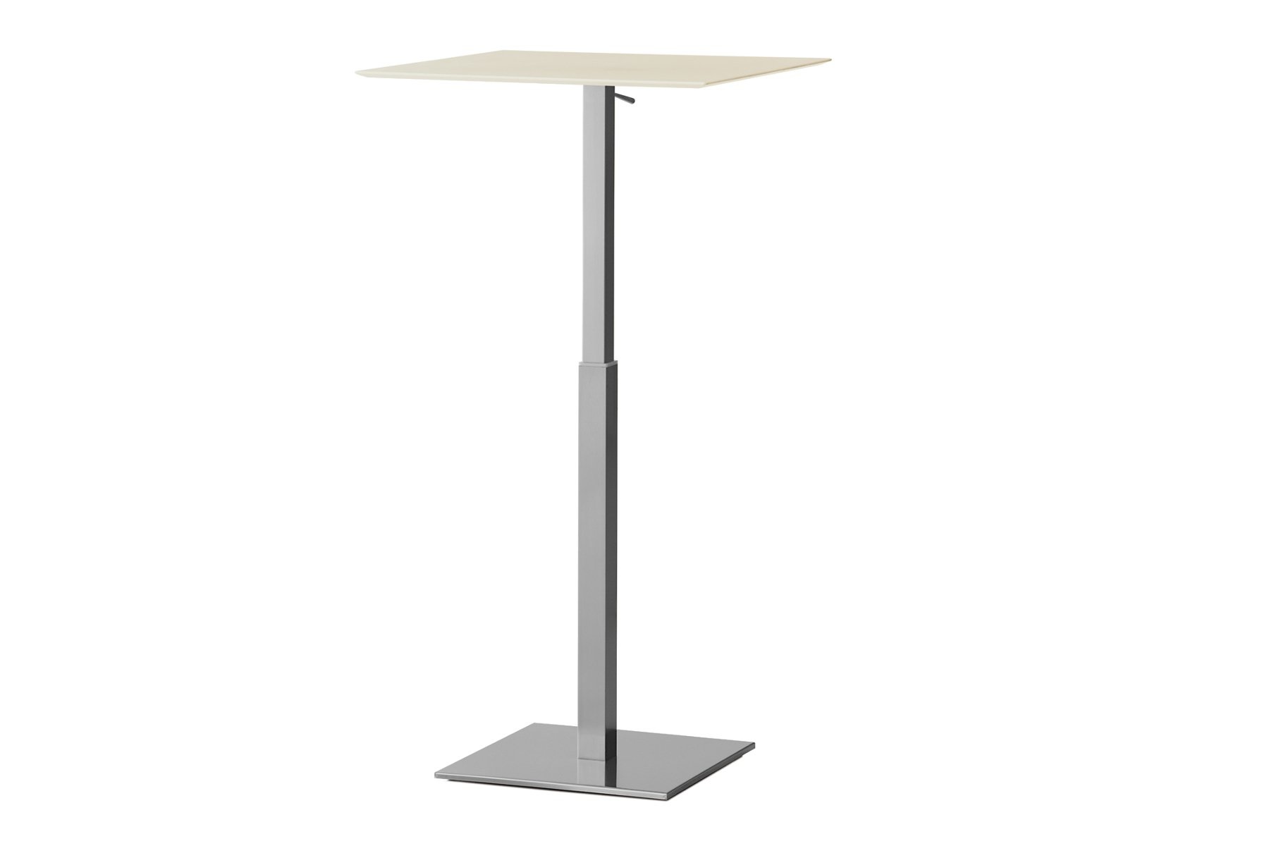 Inox 4441 is een vierkante tafel met een geborstelde roestvrijstalen kolom van 80 x 80 mm.