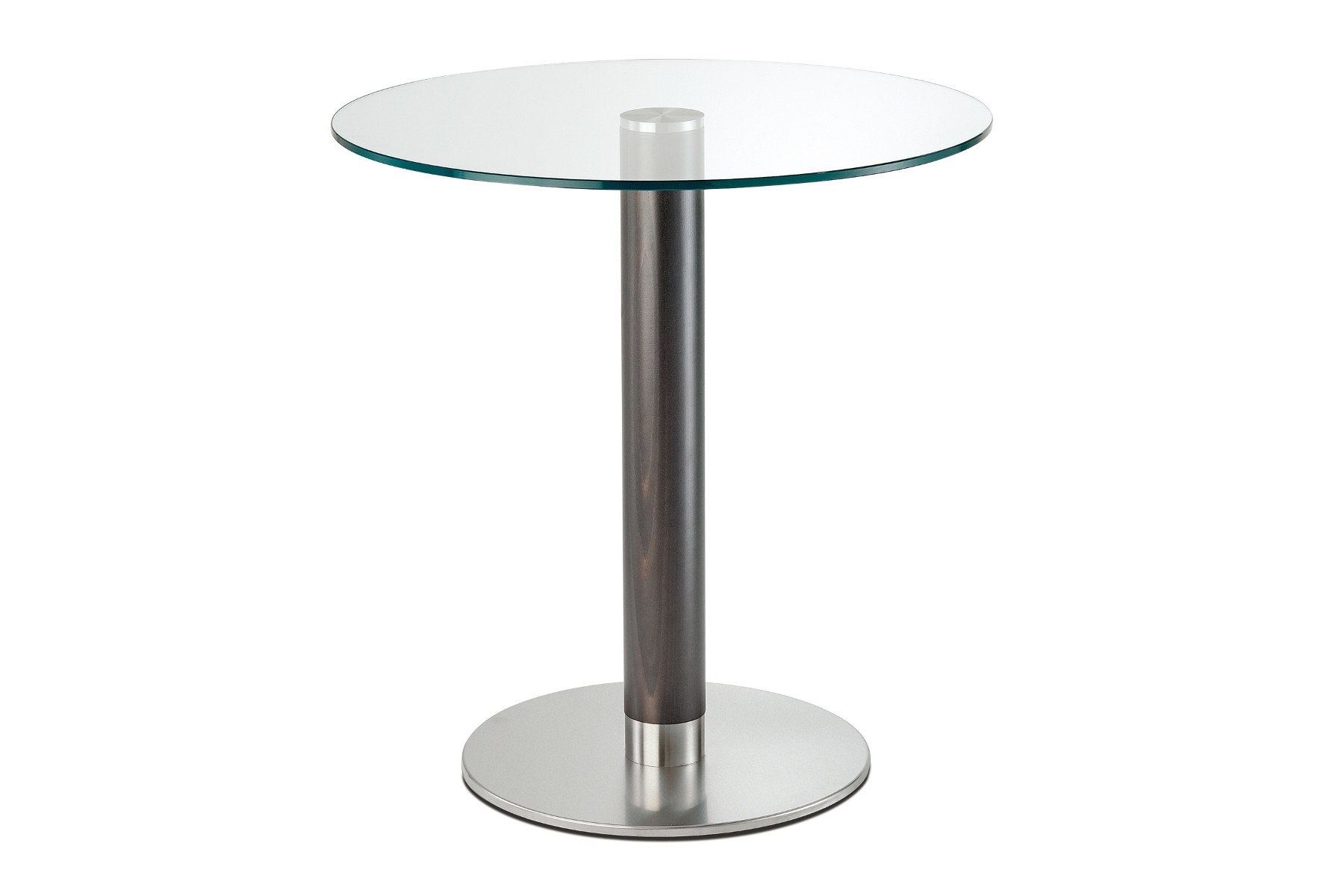 De Inox round 4411 is een tafelvoet met een geborsteld roestvrij stalen onderstel met een Ø van 450 mm en buis met een Ø van 76 mm. De hoogte is 730 mm. Zwart gelakt glazen tafelblad.