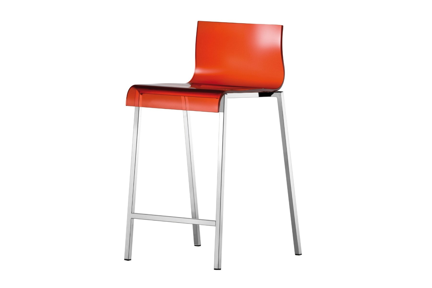De Kuadra 1186_CR is een barkruk met een hoogte van 77 cm en stapelbaar tot 4 stuks en verkrijgbaar in de kleuren geel, oranje, rood, wit, baluw, grijs en baluw/grijs. De barkruk heeft een stalen frame met een Ø van 16 mm.