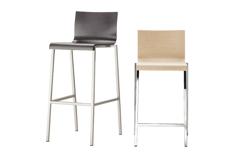 De Kuadra 1326_ST is een houten barkruk met een hoogte van 80 cm. De barkruk heeft een stalen frame.