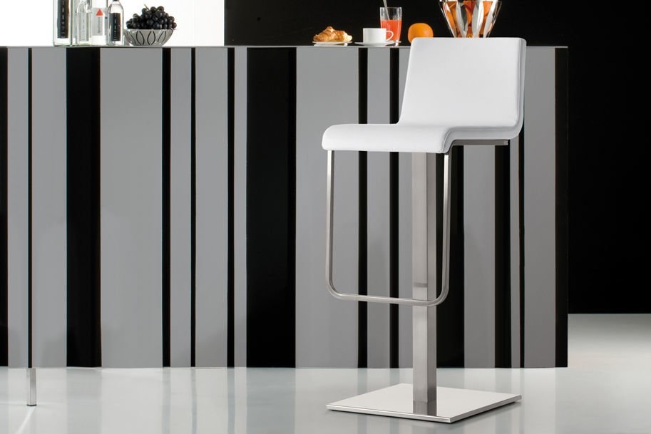 De Kuadra 4415/KUTP_CR is een barkruk met een zithoogte van 77 cm en is verkrijgbaar in de kleuren wit en lichtgrijs. De barkruk staat op 1 stalen poot met een Ø van 50 mm en heeft rondom een voetensteun.