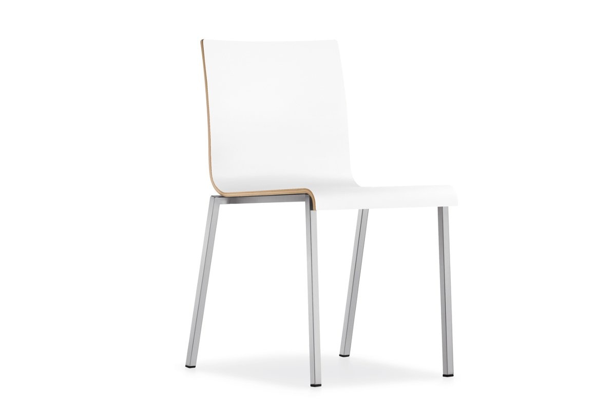 De vierpootstoel Kuadra 1101_ST is stapelbaar tot 8 stuks en verkrijgbaar in de kleuren wit en lichtgrijs. Het onderstel is van staal.