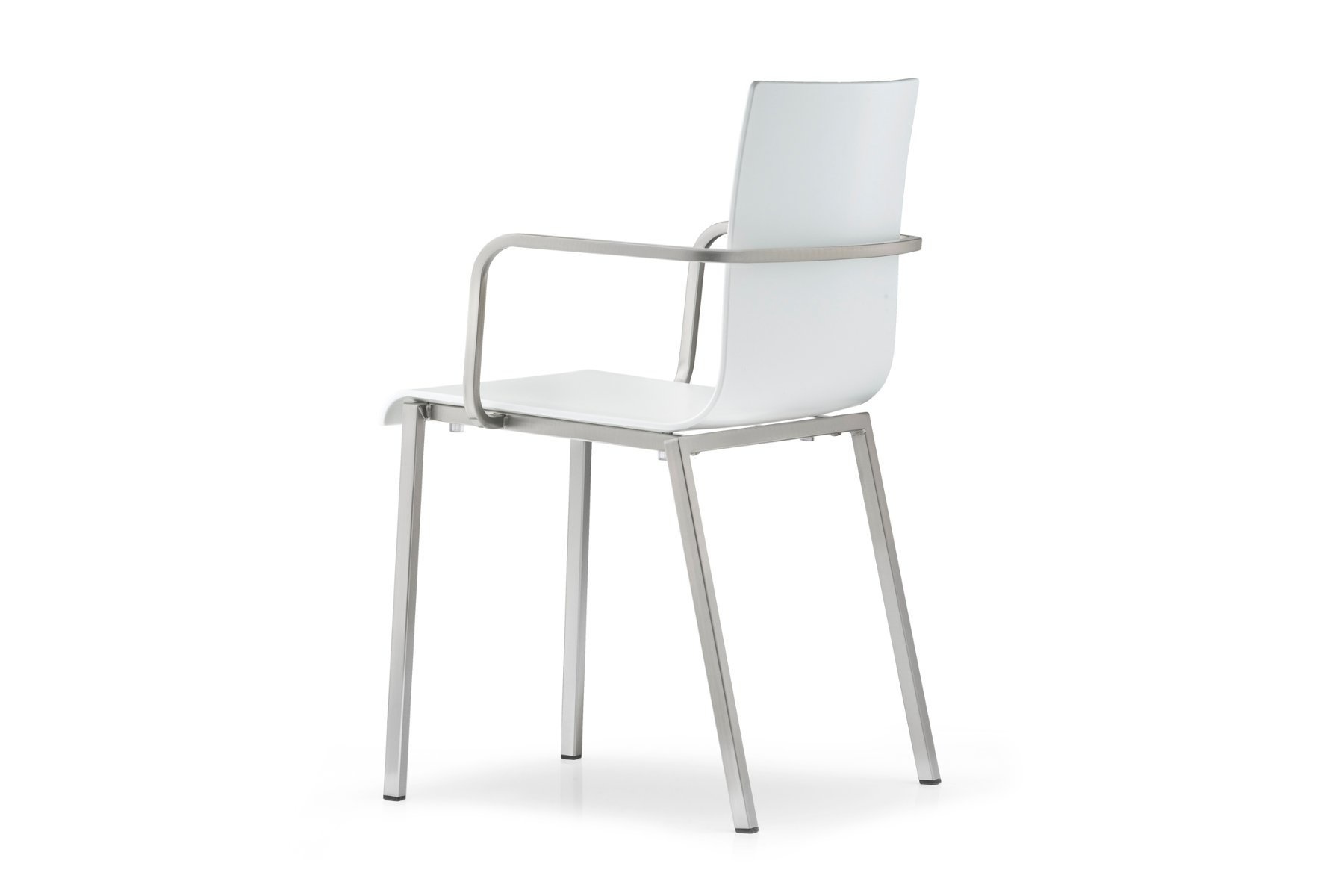 De Kuadra 1115_VER is stapelbaar tot 6 stuks en verkrijgbaar in de kleuren wit en lichtgrijs. De stoel heeft armleggers en een stalen frame met een Ø van 16 mm.