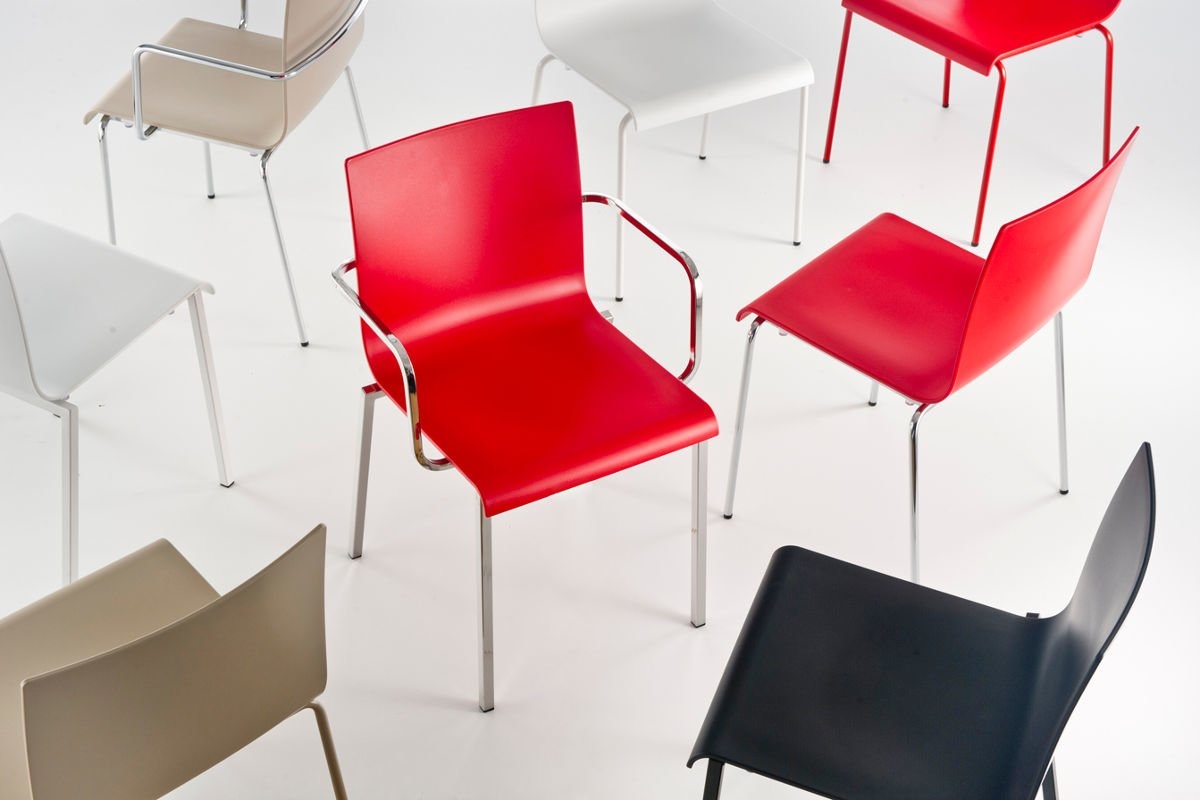 De Kuadra XL 2404_CR is stapelbaar tot maximaal 6 stuks en de Kuadra XL 2404_CR heeft armleggers. Leverbaar in de volgende vier kleuren: wit, grijs, rood en zwart. De poten zijn van staal en hebben een Ø van 16 mm.