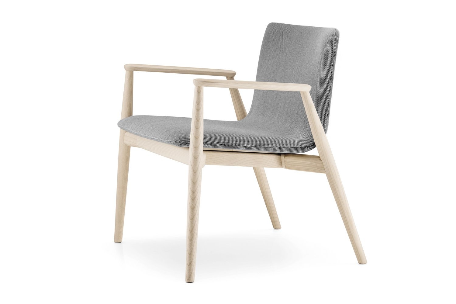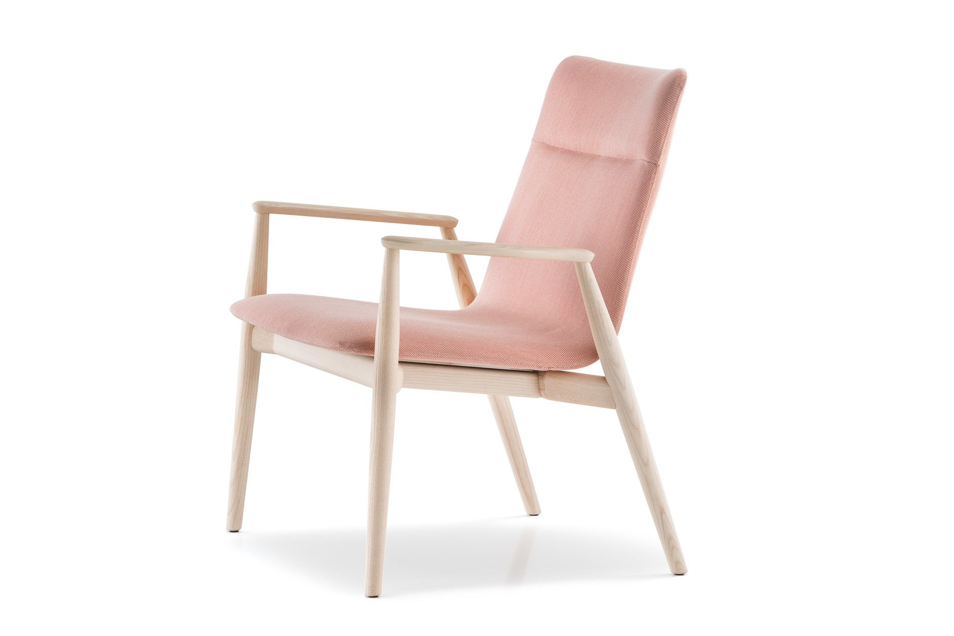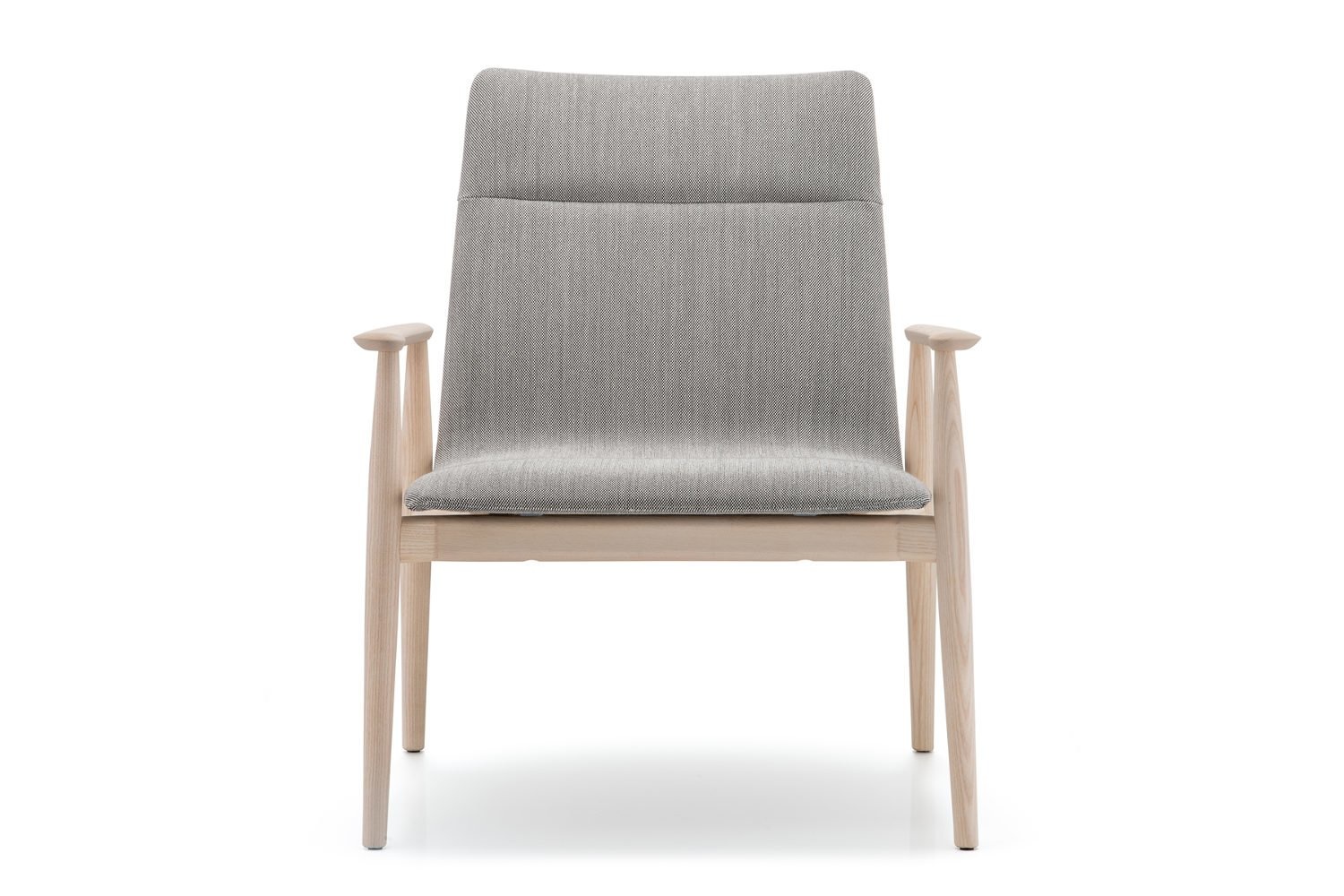 Deze lounge fauteuil is gemaakt van massief essenhout en leverbaar in de kleuren zwart of lichtgrijs getint. De zitschaal is gestoffeerd.