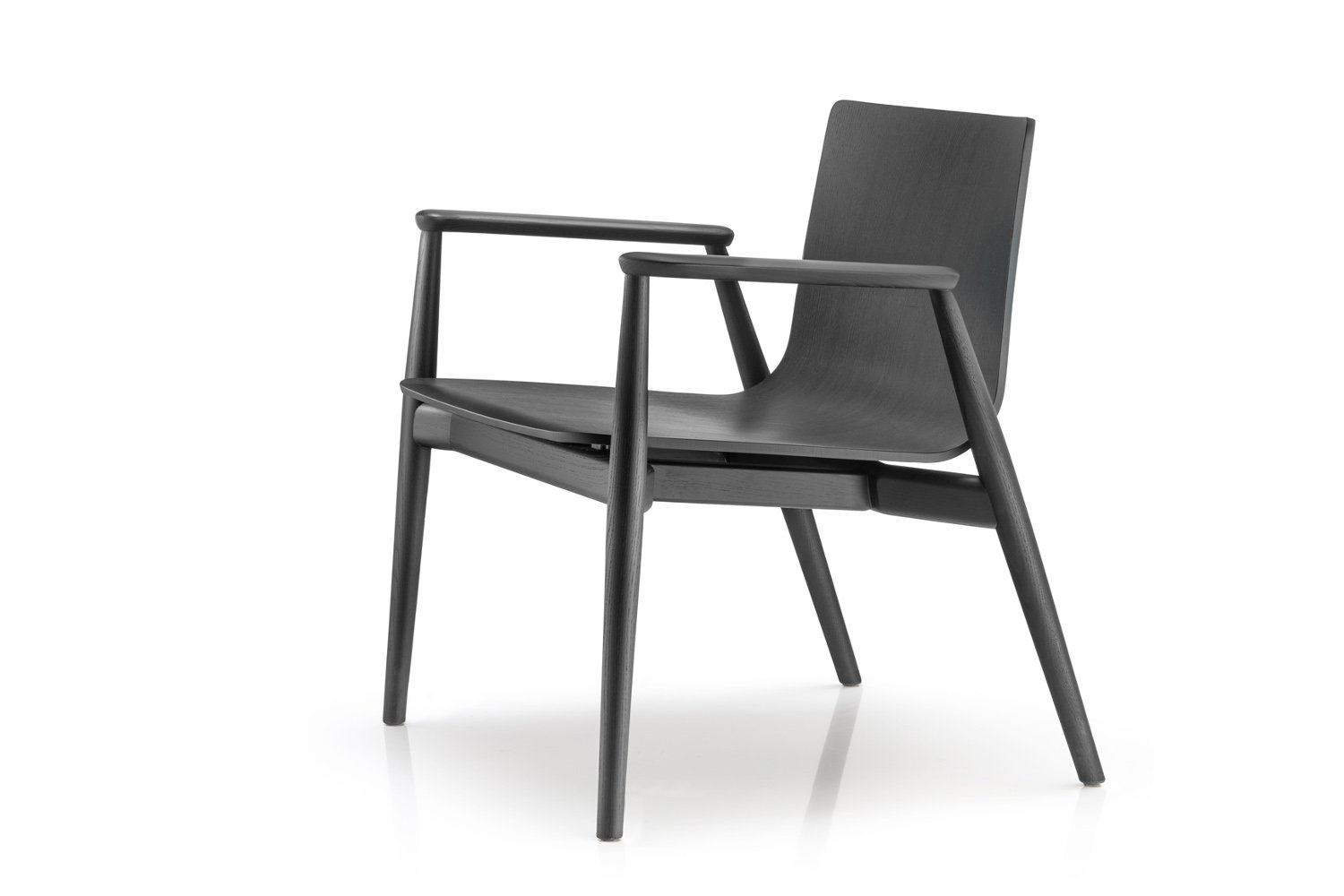 Deze lounge fauteuil is gemaakt van massief essenhout en leverbaar in de kleuren zwart of lichtgrijs getint. De zitschaal is van essen gefineerd multiplex.