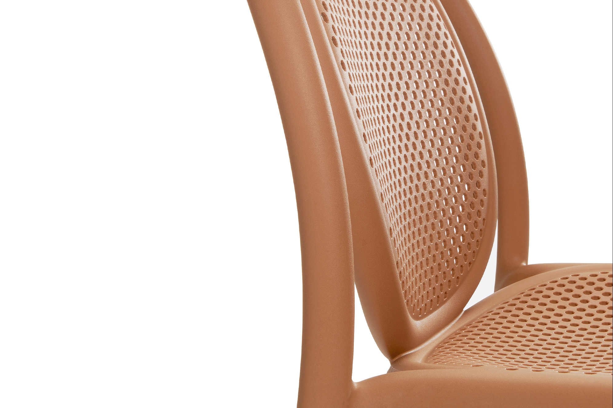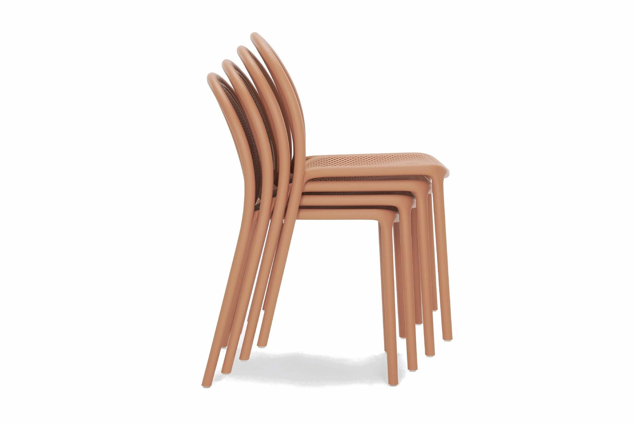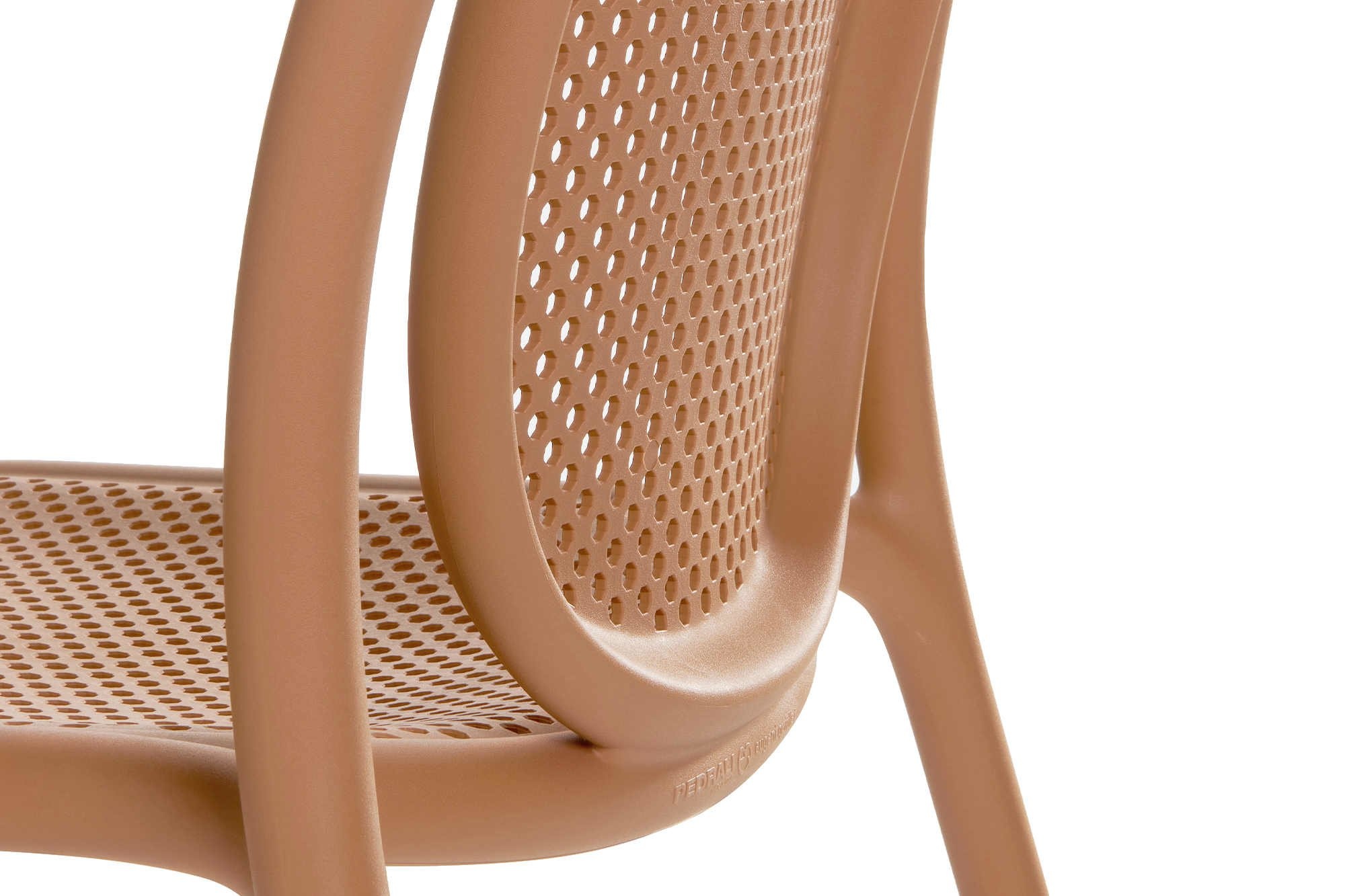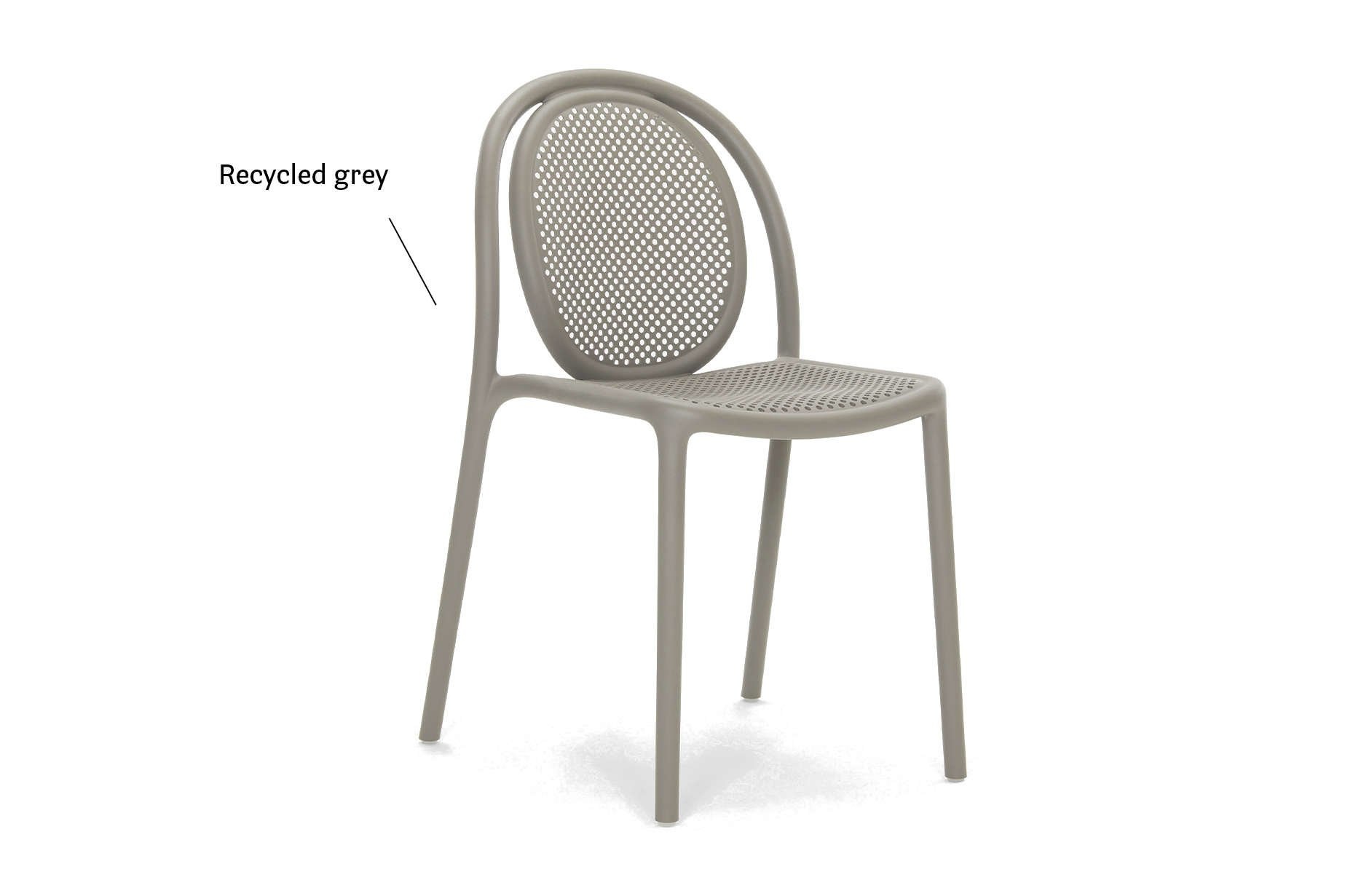 De Pedrali Remind stoel is ideaal voor in de horeca. Op een terras buiten of binnen. Het design heeft de uitstraling van een klassieke houten horecastoel, maar dan met een duurzaam tintje. De Remind is namelijk gemaakt van gerecycled kunststof (enkel leverbaar in het grijs). Andere kleuren zijn mogelijk, maar die is dan niet van gerecycled materiaal gemaakt.De geperforeerde rugleuning valt op en zorgt voor een goede ventilatie. Eigenschappen van de Pedrali Remind 3730 stoel
