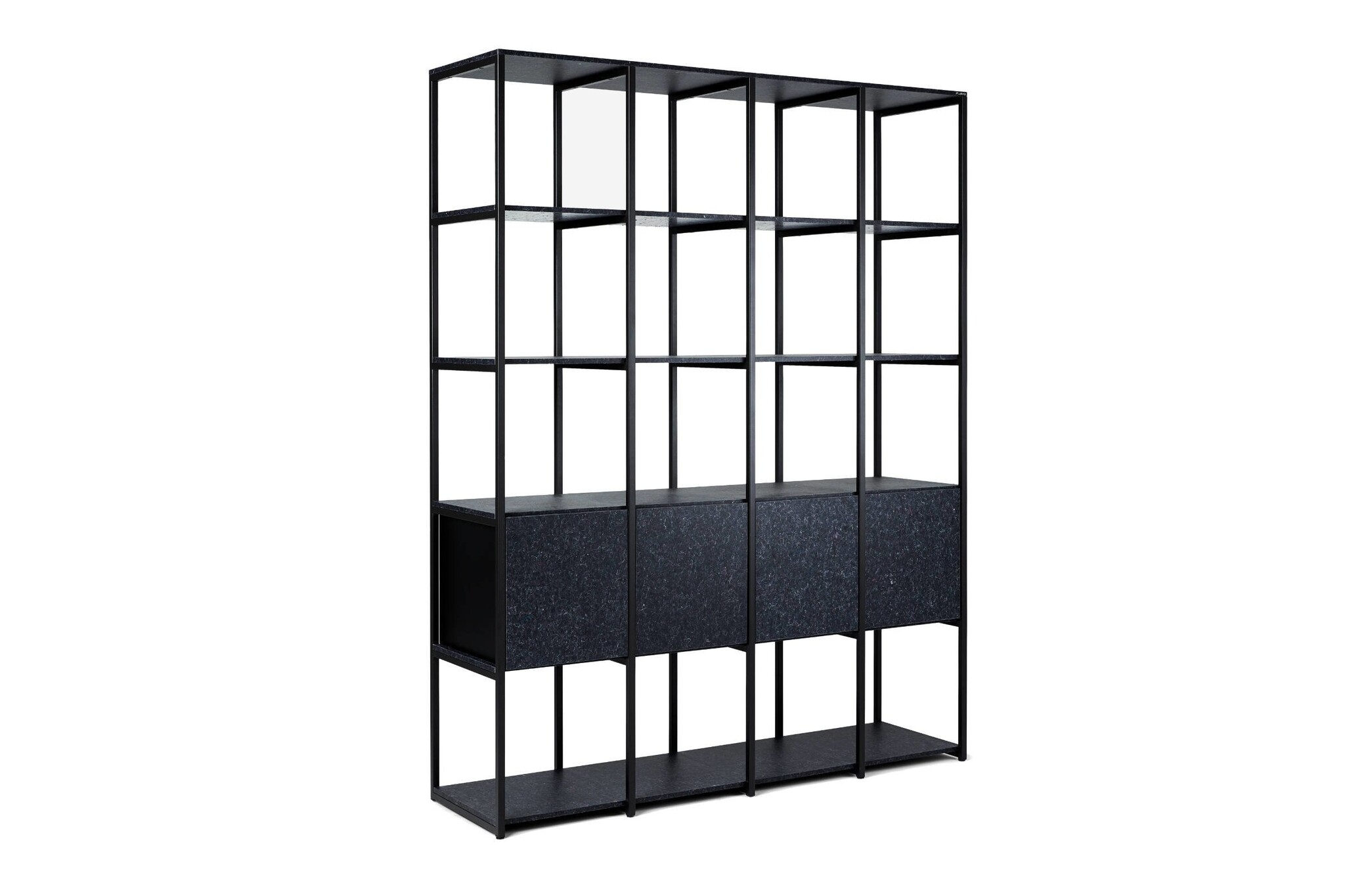 Zo heeft deze kast 2 functies in 1: opbergen, ruimte verdelen en akoestiek verbeteren.