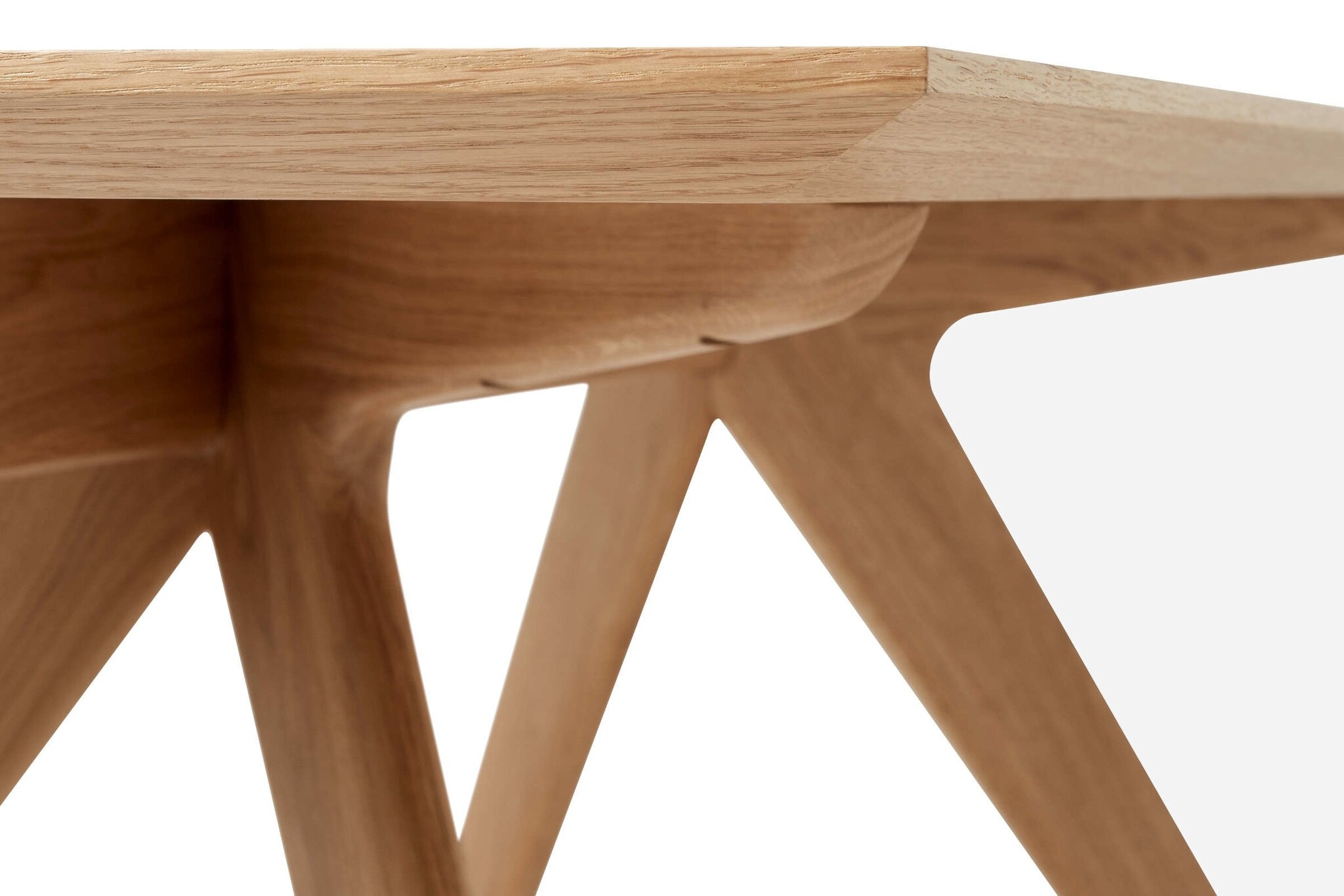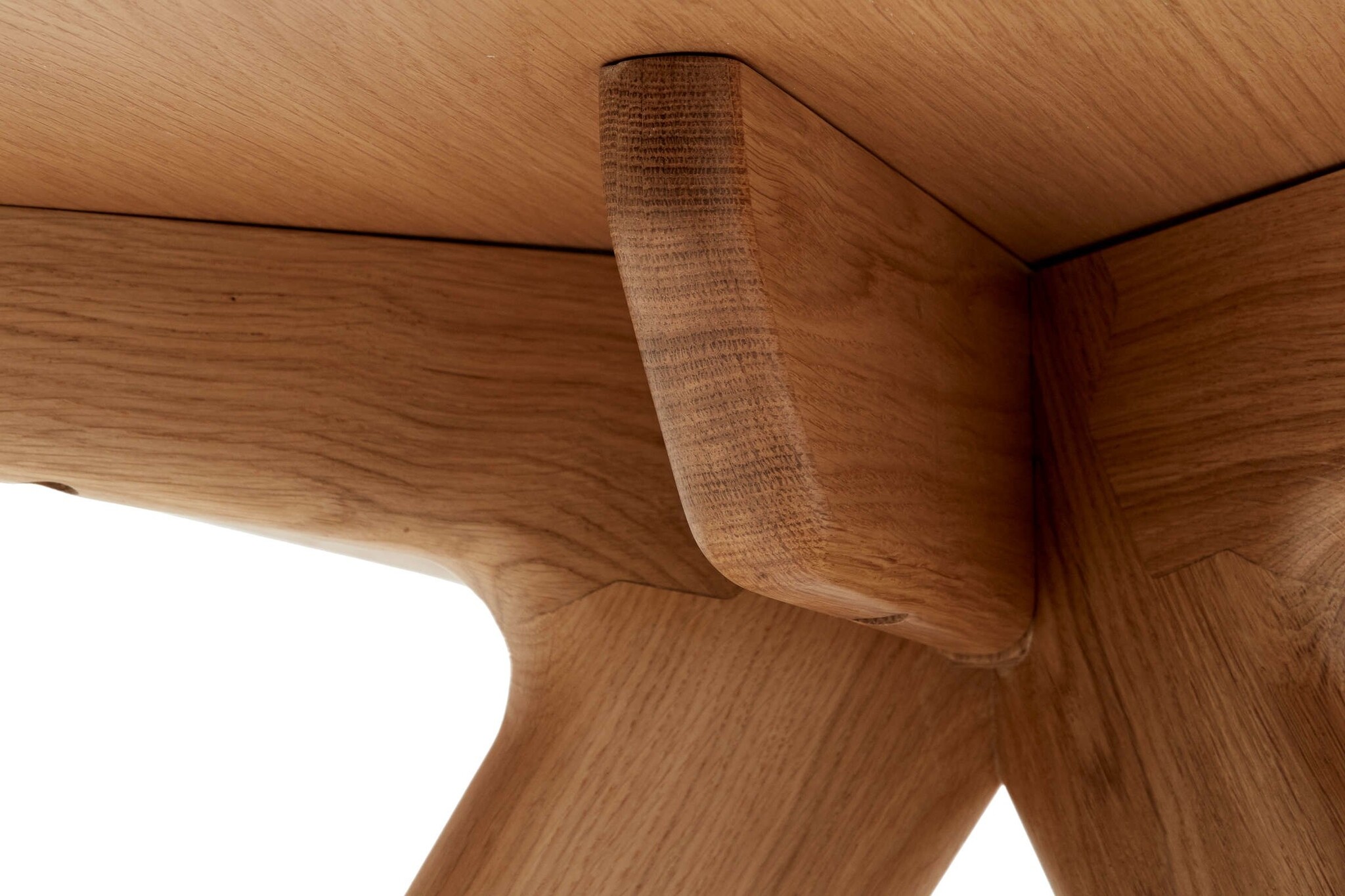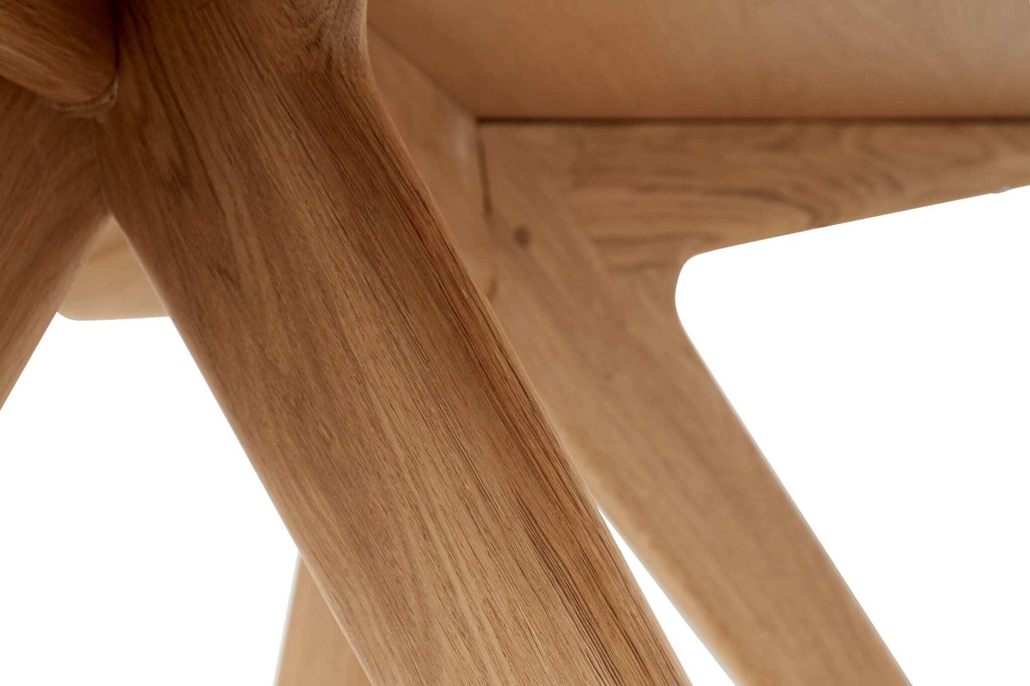 Massief eiken onderstel met eiken gefineerd tafelblad