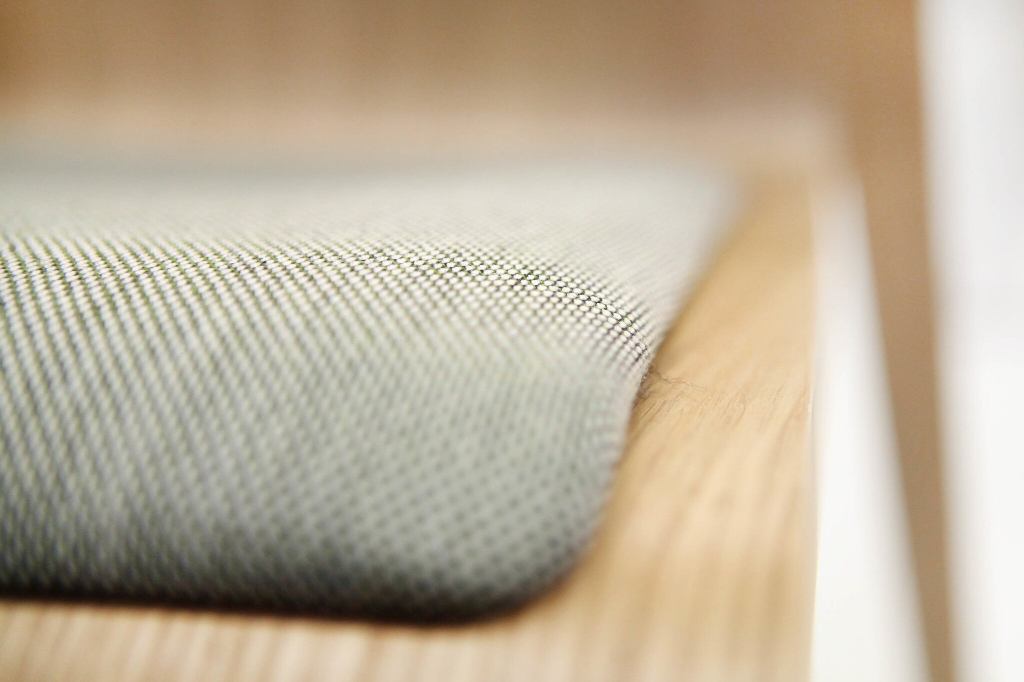 De stoelen zijn volledig van hout of leverbaar met een gestoffeerde zitting. De standaard beitskleuren zijn wengé, noten en zwart. Speciale kleuren zijn op aanvraag.