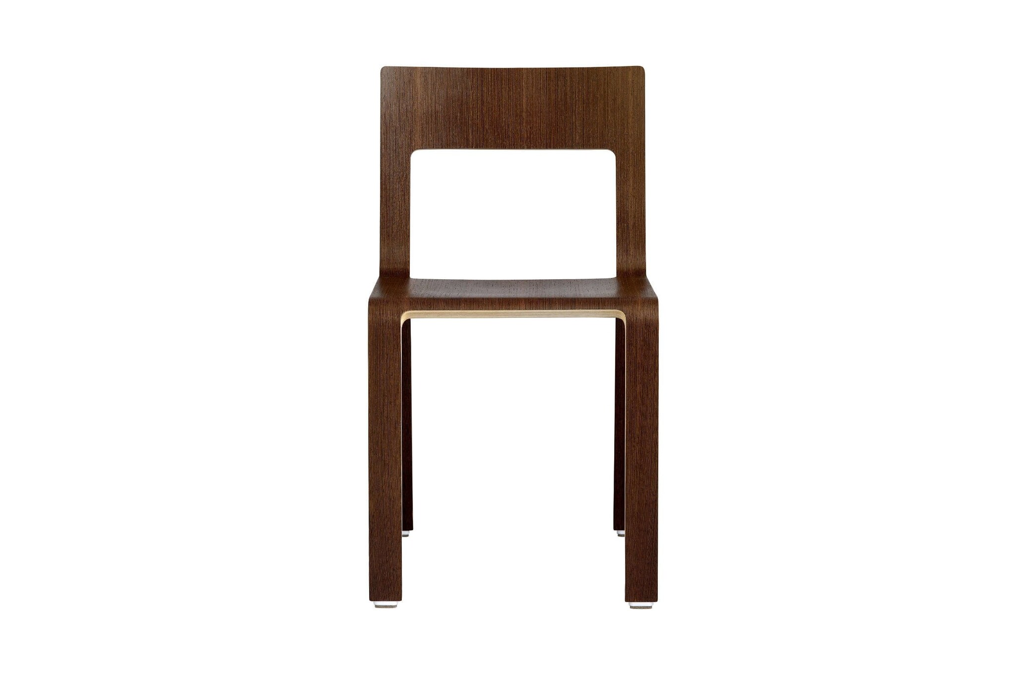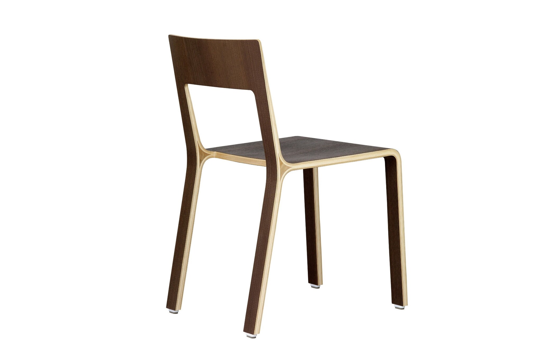 De stoelen zijn volledig van hout of leverbaar met een gestoffeerde zitting. De standaard beitskleuren zijn wengé, noten en zwart. Speciale kleuren zijn op aanvraag.