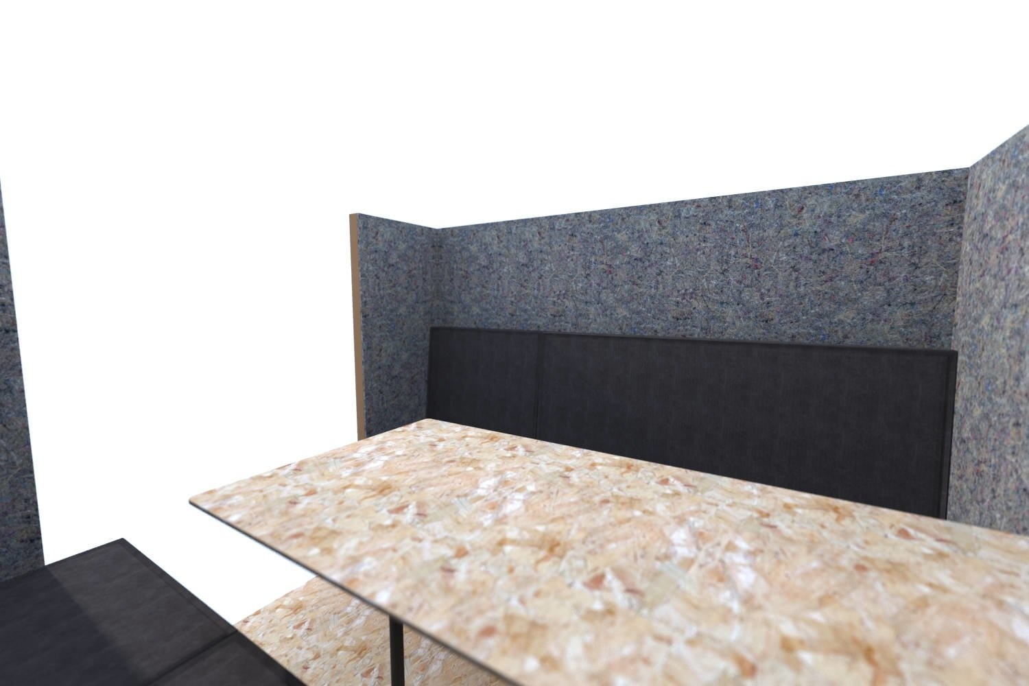 Materialen: OSB, Honingraatkarton, MDF, Staal, Akoestisch vilt, schuim, canvas.