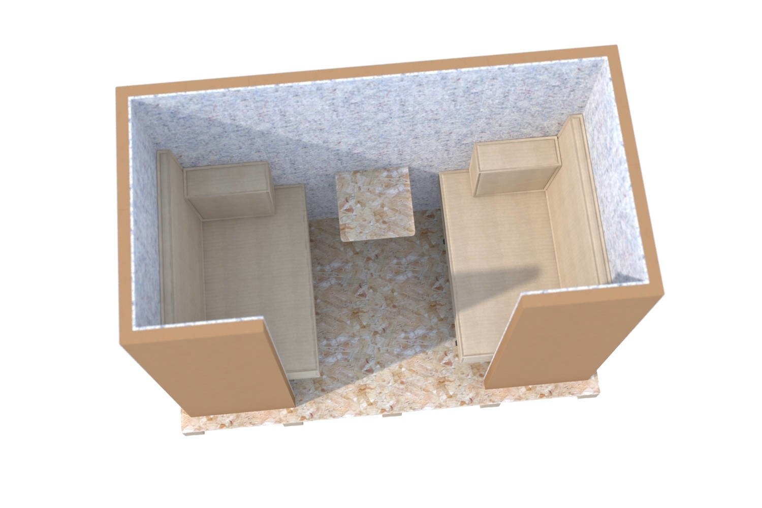 De No 4 is een dakloze versie van de Office-in-a-Box No 3, met plaats voor twee personen.