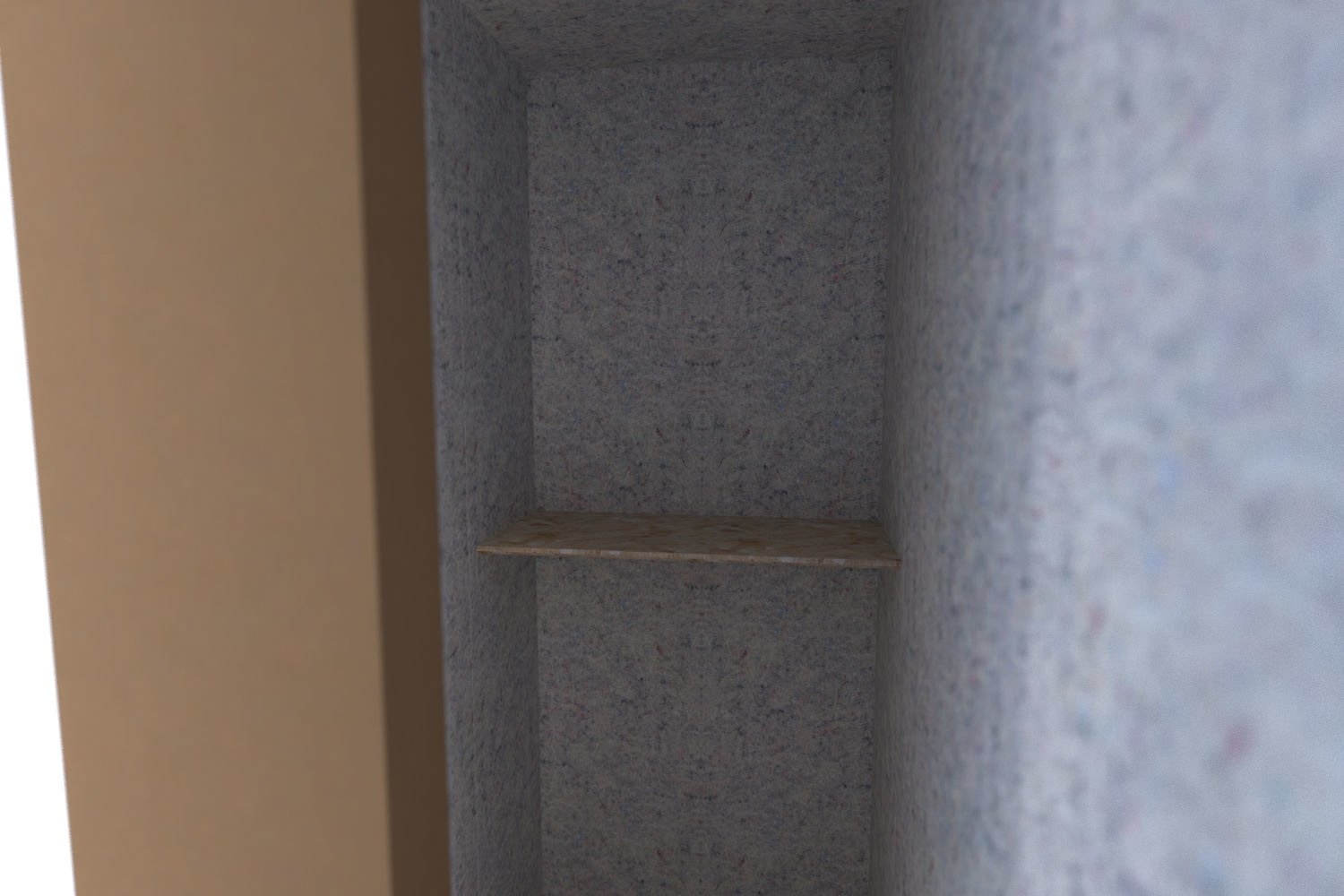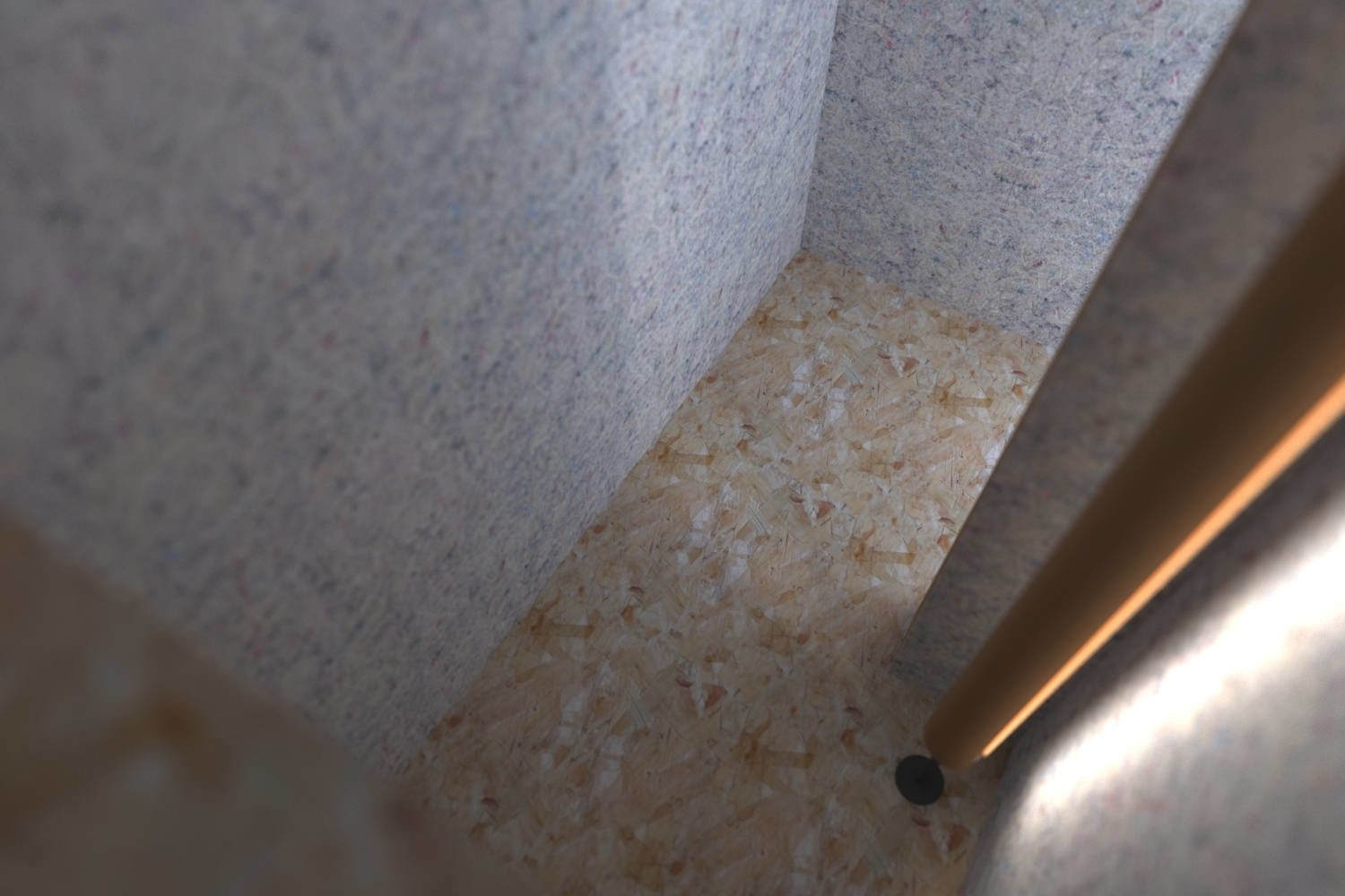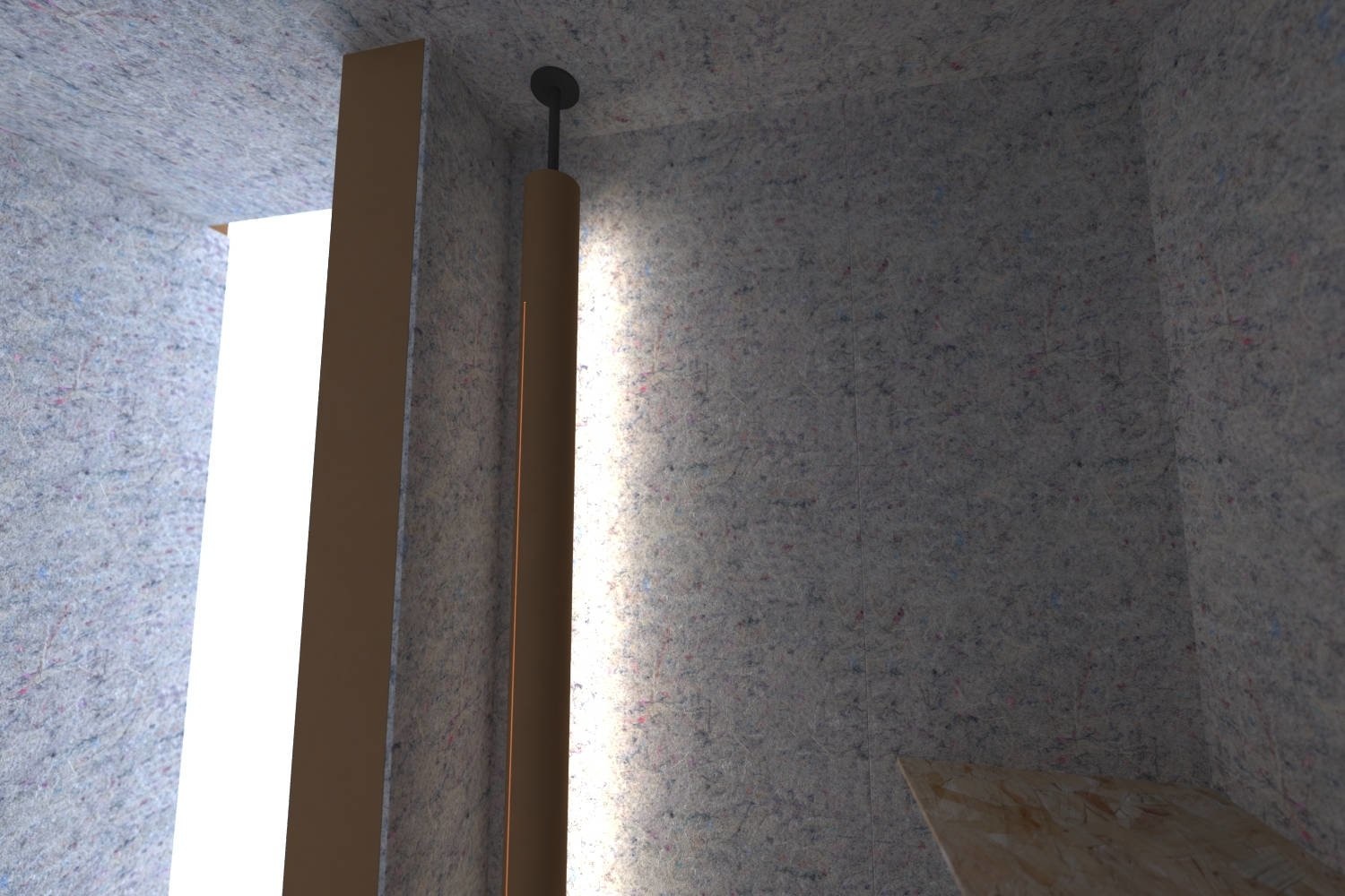De wanden en het plafond, die zijn bekleed met een extra dikke laag akoestisch vilt. Deze verzekeren je niet alleen van een goede geluidsisolatie, maar bieden ook een warme, knusse ruimte om in te zijn.