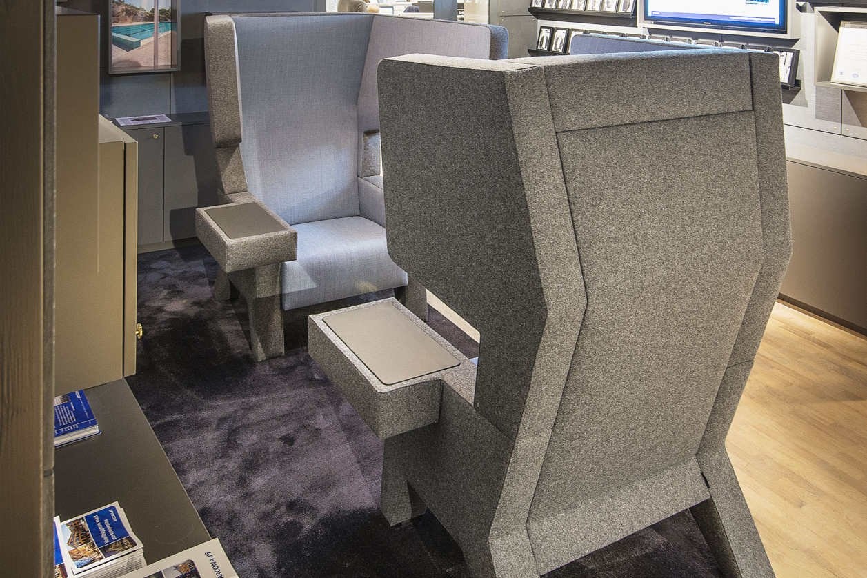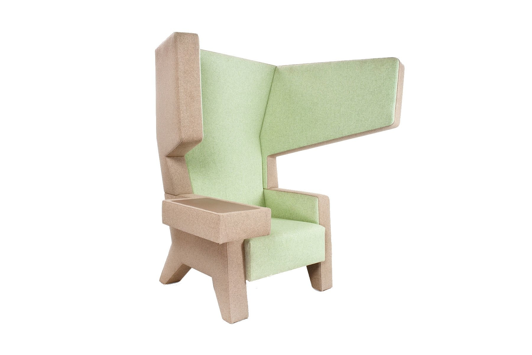 De Prooff EarChair is een akoestische fauteuil waarin u ongestoord in kunt bellen, werken of overleggen. De oren zijn in verschillende afmetingen te verkrijgen en deze verlengde oren (tot wel 1 meter!) zorgen voor coconachtige isolatie. Op het handige plateautje (te bekleden in leer) kunt u uw tablet of laptop plaatsen om te kunnen werken of snel notities te maken tijdens uw telefoongesprek. In de huidige, open kantoren biedt de Prooff EarChair met geluiddempende oren, de ideale plek voor een vergadering of een snelle chat. Daarnaast is het echt een eyecatcher, zeker wanneer u verschillende EarChairs van Prooff naast elkaar zet met verschillende afmetingen van de oren. Kenmerken Prooff EarChair