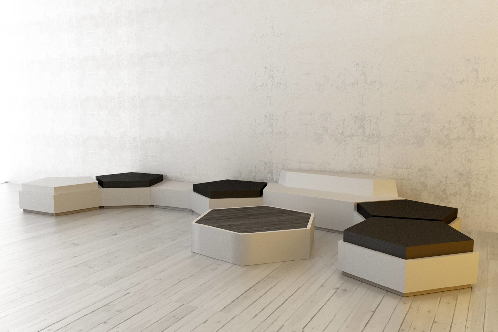 Een bank en poef in diverse maatvoeringen en kleuren. Pentagon is tevens geschikt voor buitengebruik. Dankzij de diversiteit van dit meubel, is de Pentagon in alle soorten interieur en omgevingen toe te passen.