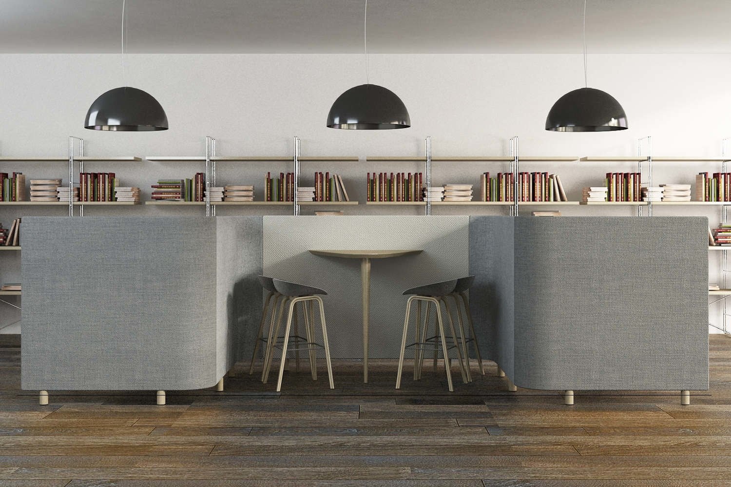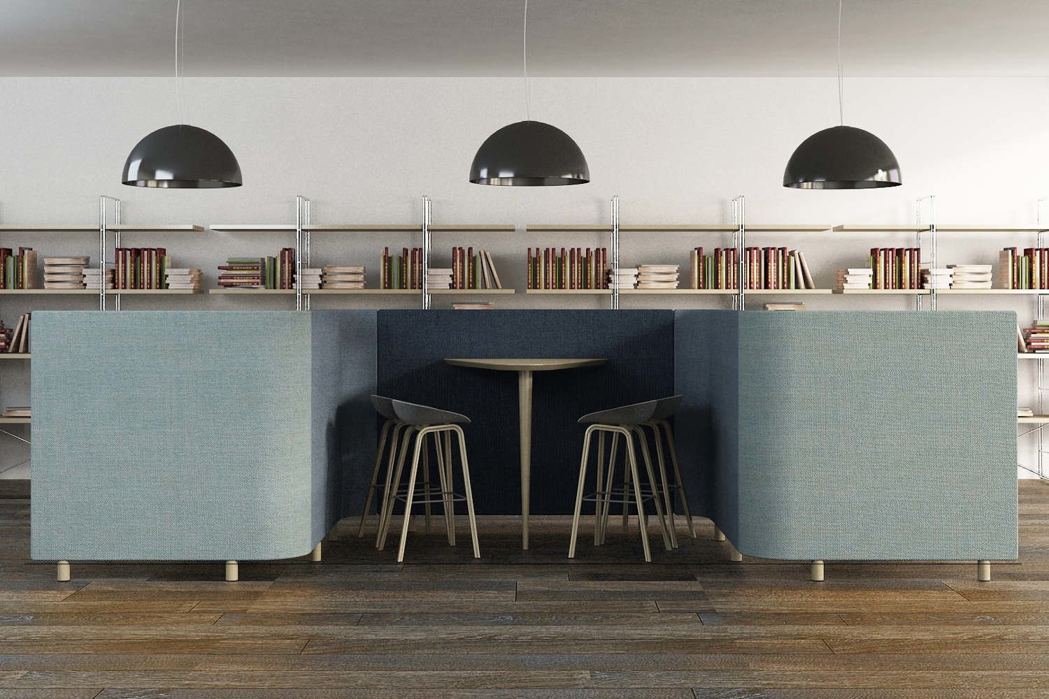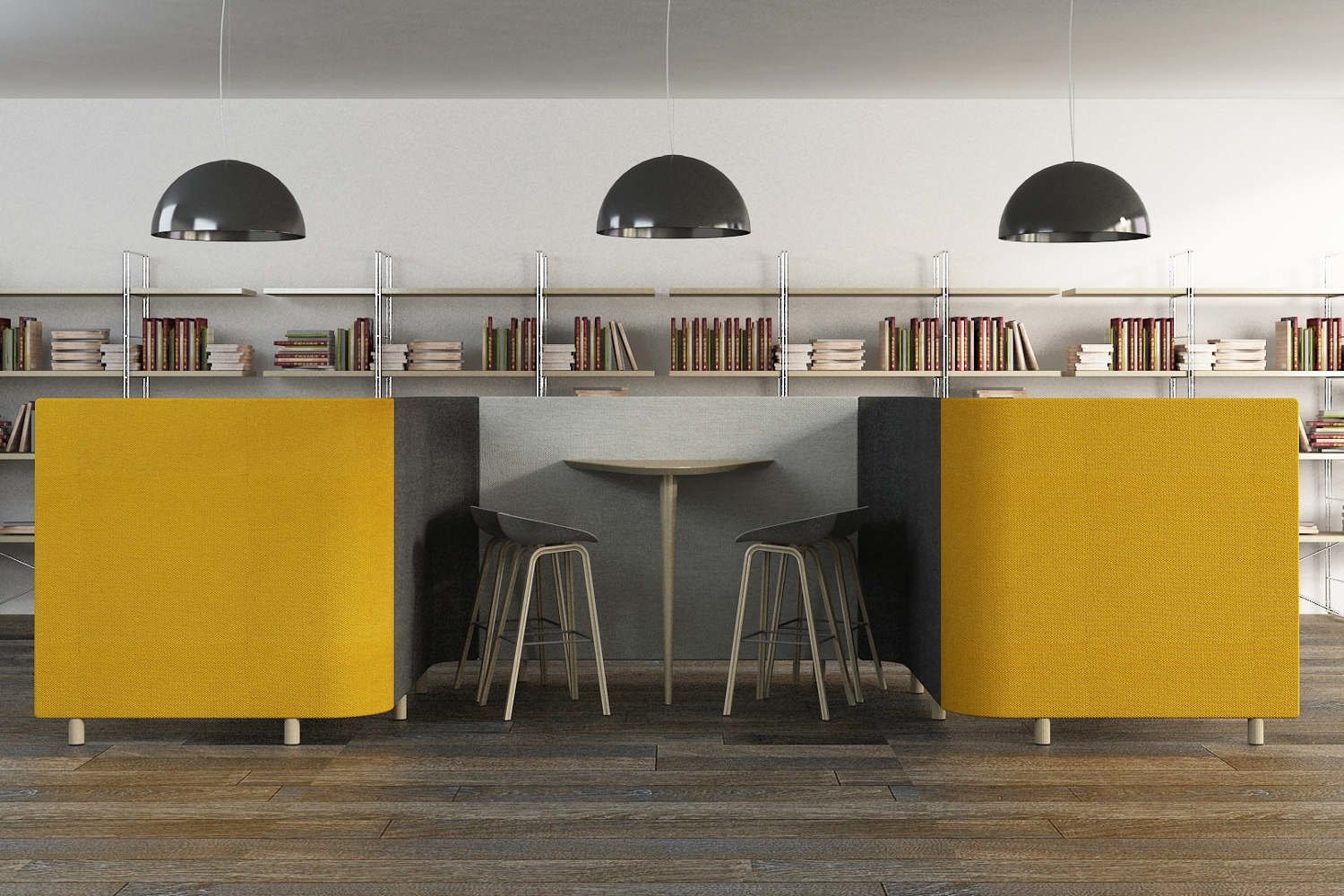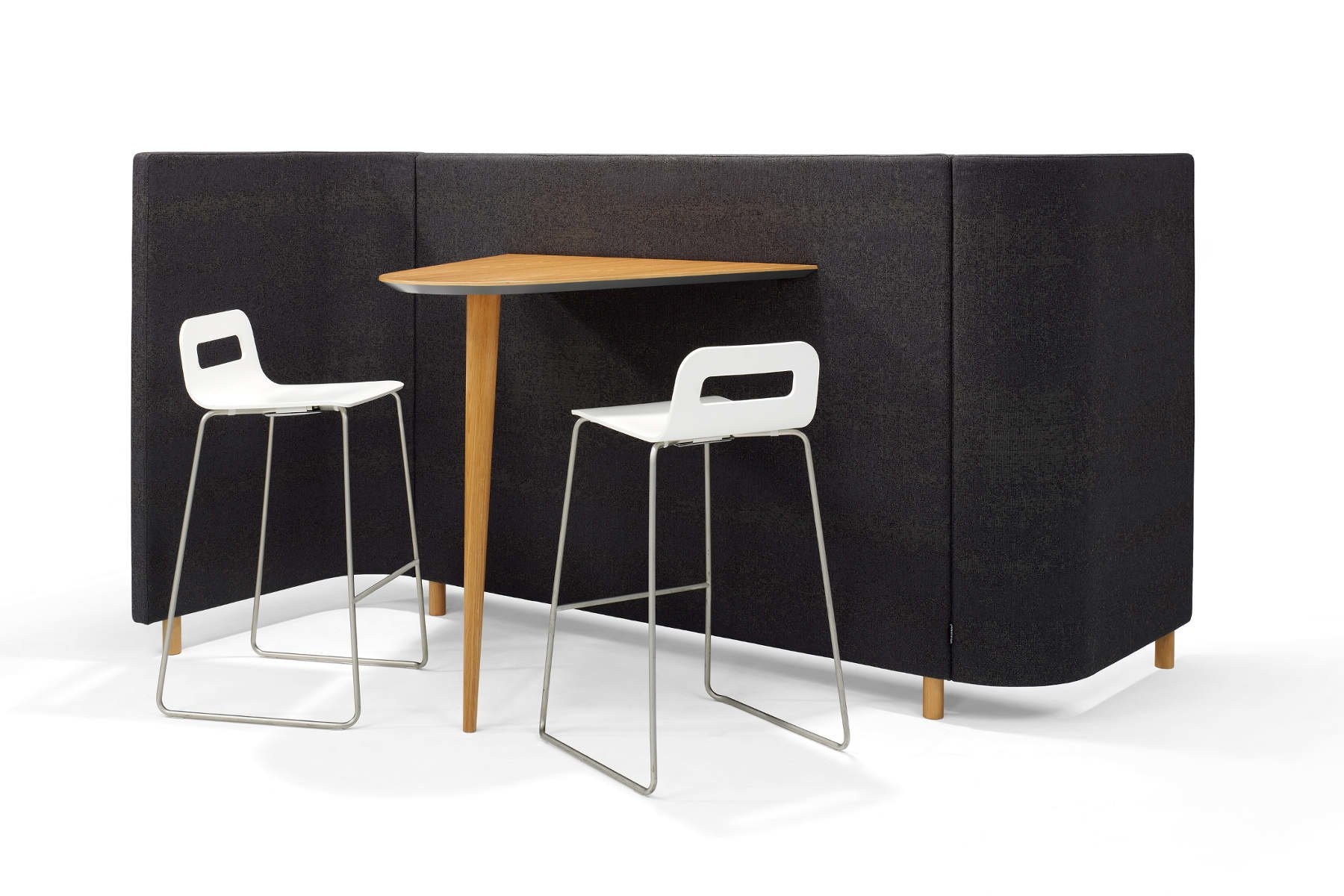 Red Stitch Sving Table High is onderdeel van de Sving collectie. Een modulair systeem om diverse opstellingen te kunnen maken, waaronder deze hoge tafel met akoestische wand om aan te eten, of staand te vergaderen. Kenmerken Red Stitch Sving Table High