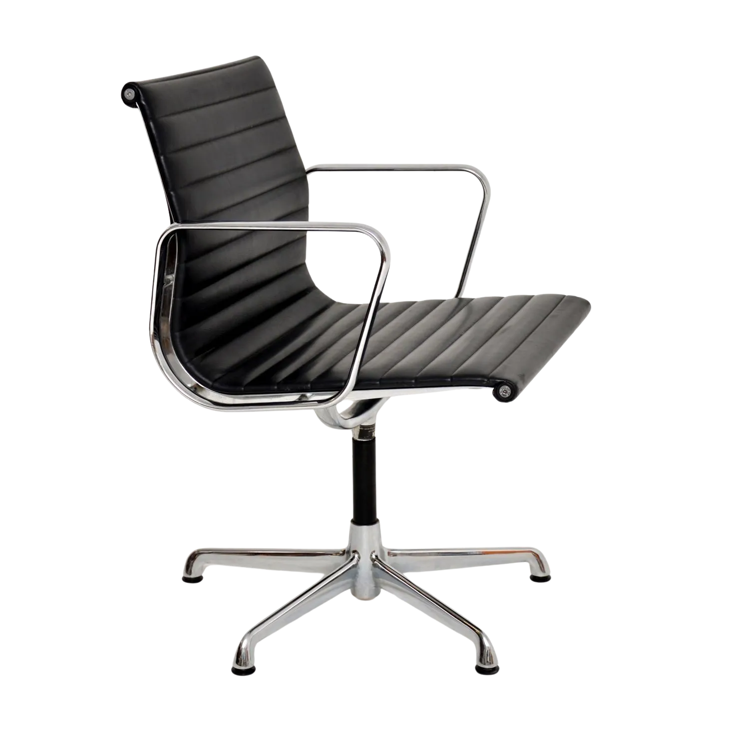 Vitra EA 108 heeft een onderstel dat vervaardigd is van aluminium. Hierdoor is de vergaderstoel makkelijk verplaatsbaar en licht in gewicht. De bekleding is uitgevoerd in zwart leder.