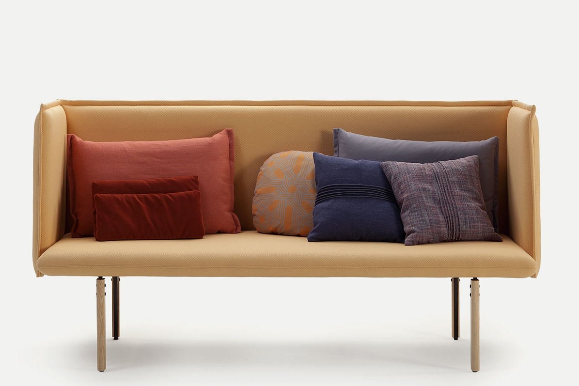 De bank heeft een afneembare rug- en kussenhoezen, behalve het wandpaneel.